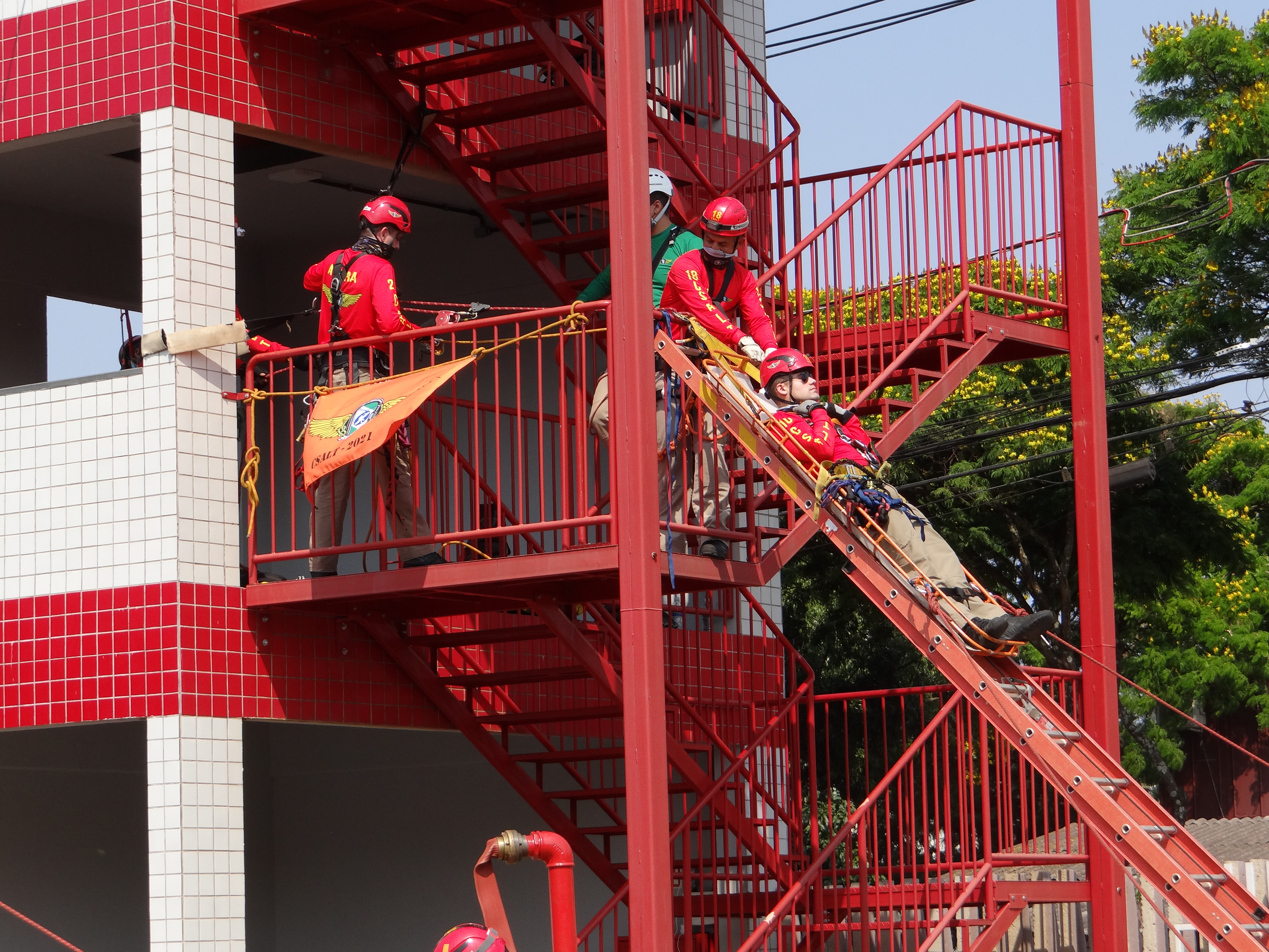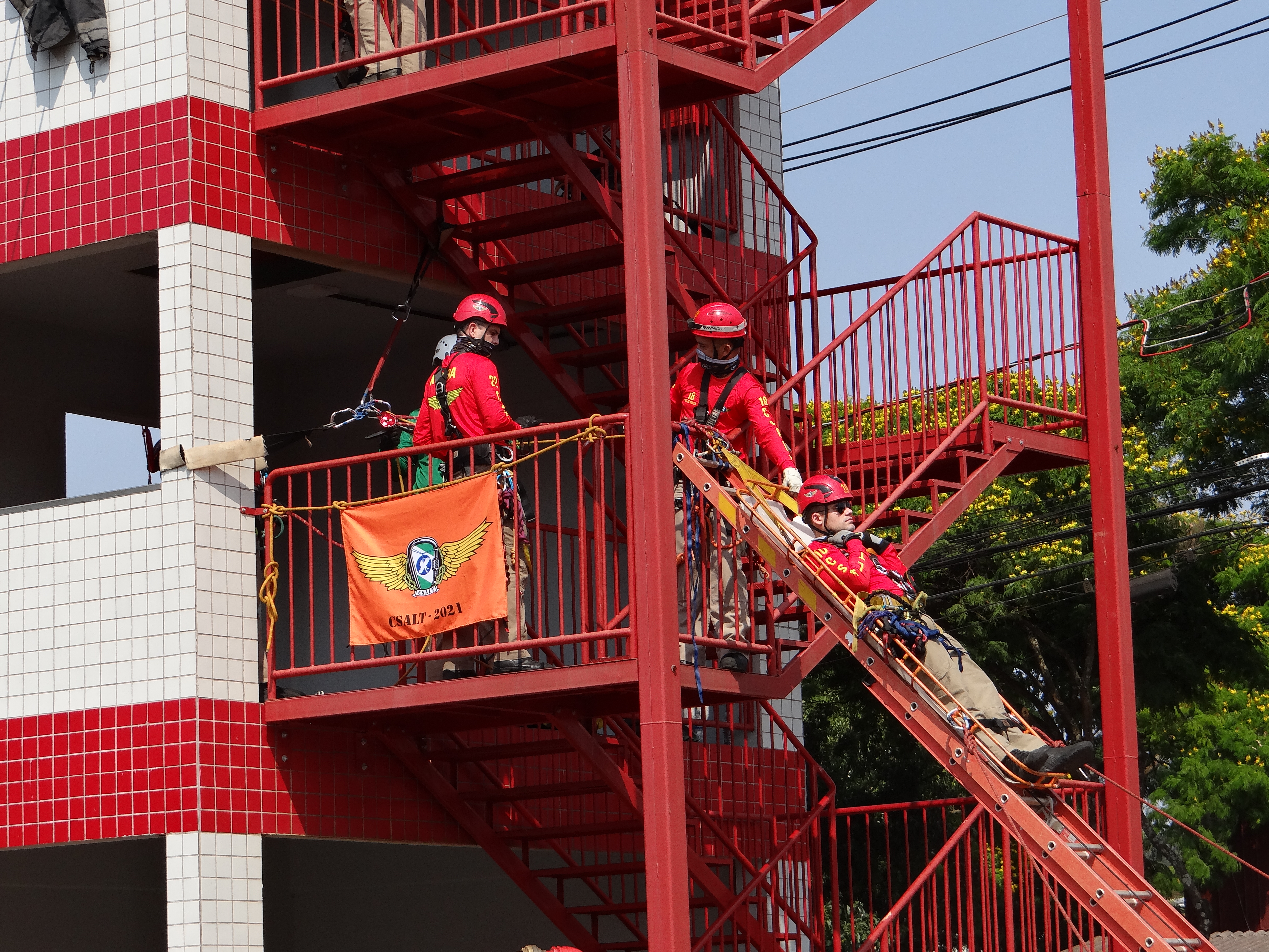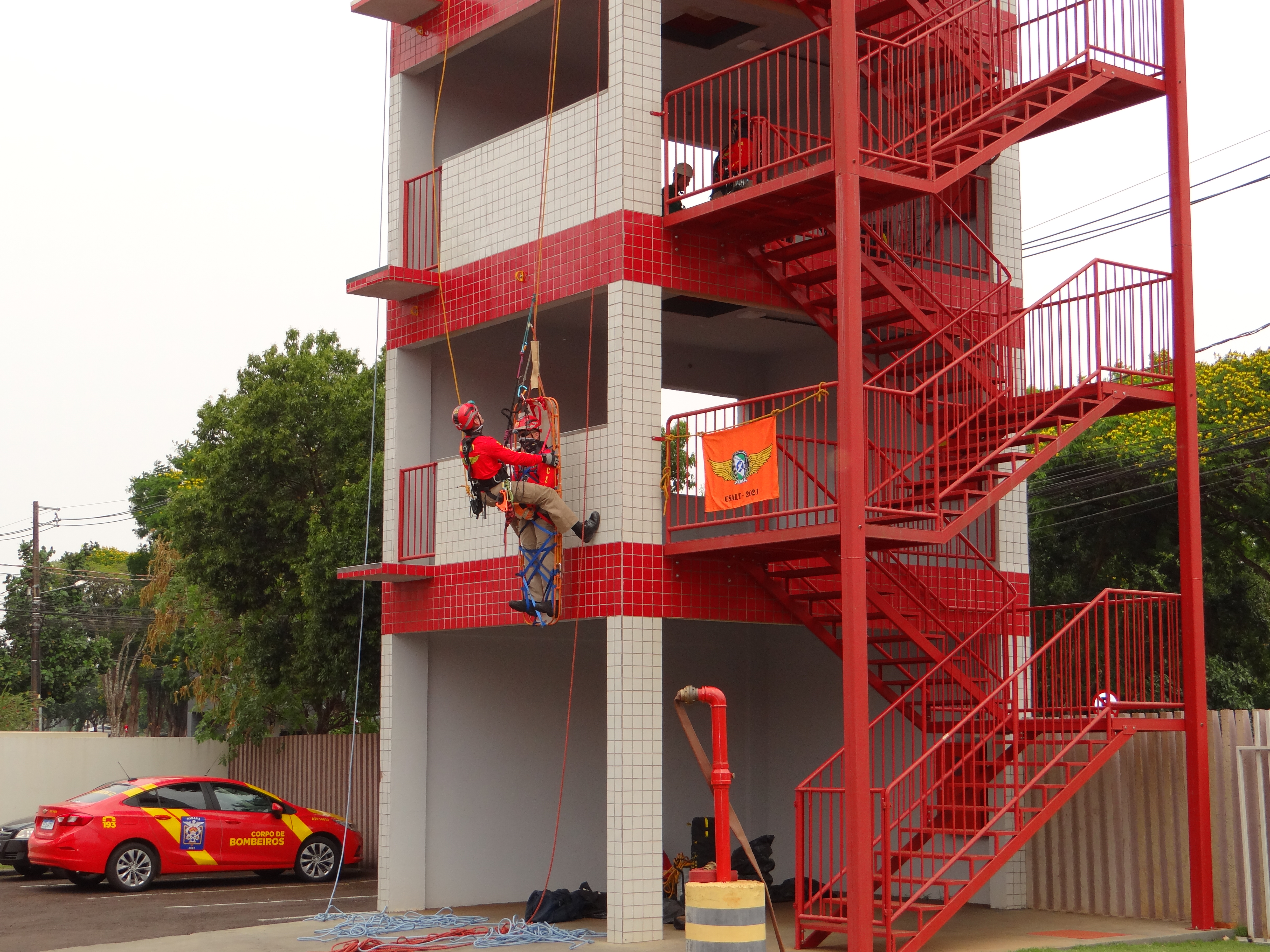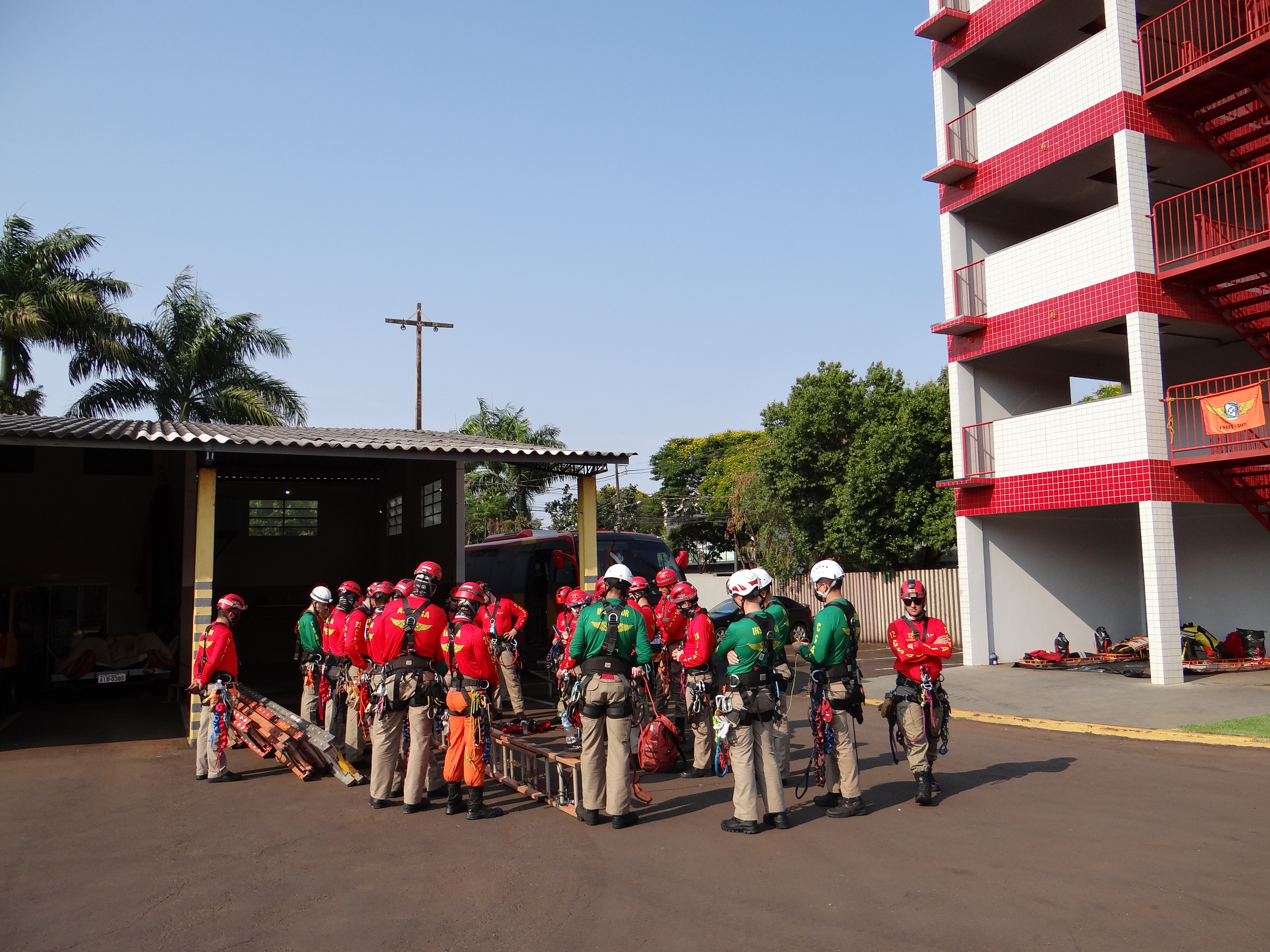 Entre os dias 20 e 23 set. 21 realizaram-se no 2º SGB/4º GB – Corpo de Bombeiros de Toledo pertencentes ao 3° Comando Regional de Bombeiro Militar, aulas práticas do Curso de Salvamento em Altura –categoria Oficiais e Praças - CSAlt – TURMA 2021 , organizado pelo Centro de Ensino e Instrução – APMG e ministrado na Academia Policial Militar do Estado do Paraná. O curso tem como objetivo nivelar conhecimentos sobre o resgate em ambiente vertical e apresentar novos conceitos e técnicas a fim de propiciar o que há de mais atual no âmbito do salvamento em altura. Chegando em sua 4ª Semana, conta com 24 Bombeiros no corpo discente sendo, 18 do Estado do Paraná praças e Oficiais, 01 do Estado de Roraima, 01 do Maranhão, 01 do Mato Grosso, 01 do Mato Grosso do Sul, 01 do Espirito Santo e 01 do Rio de Janeiro.