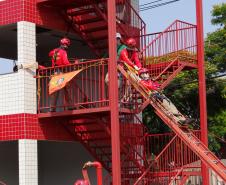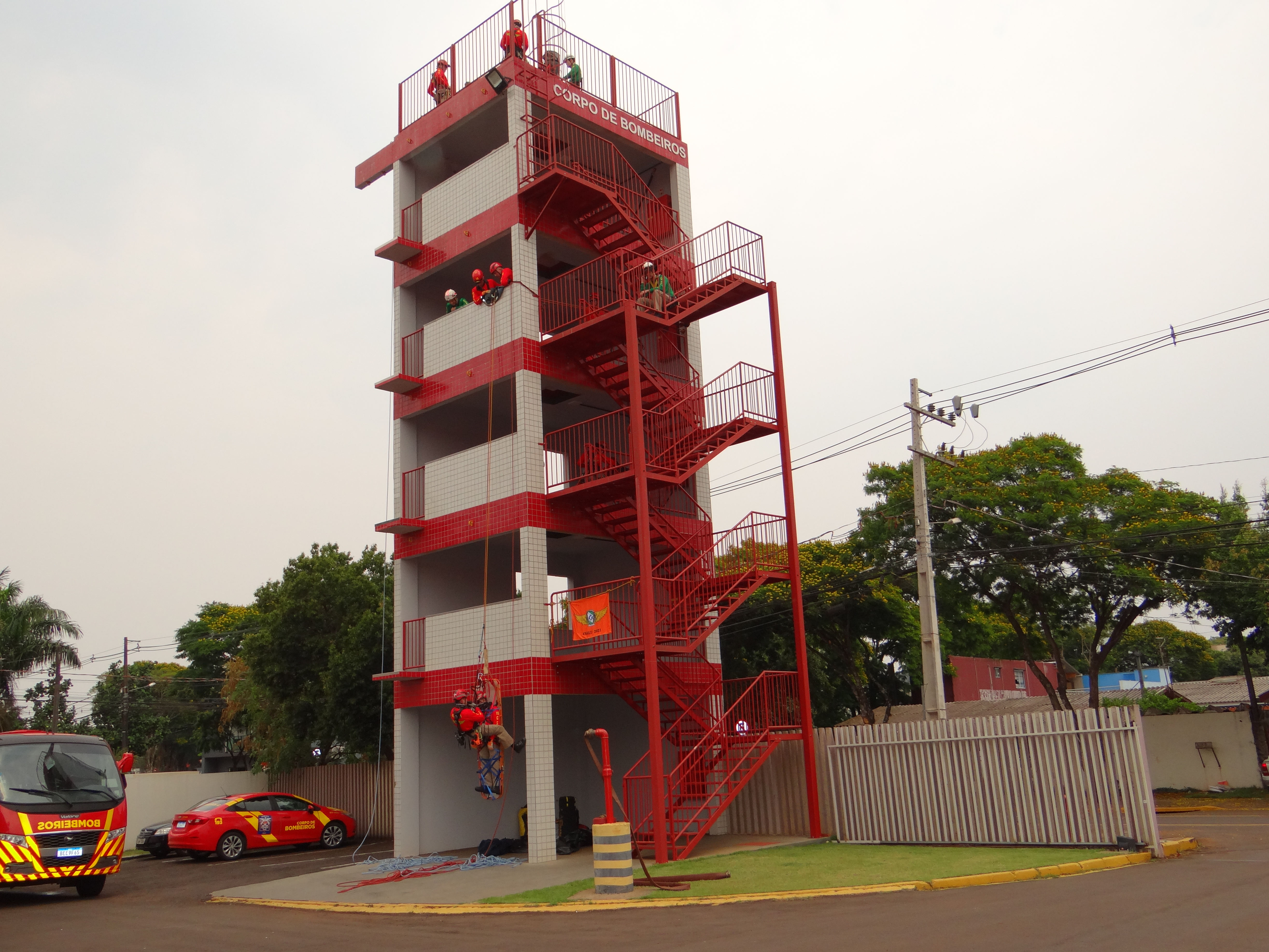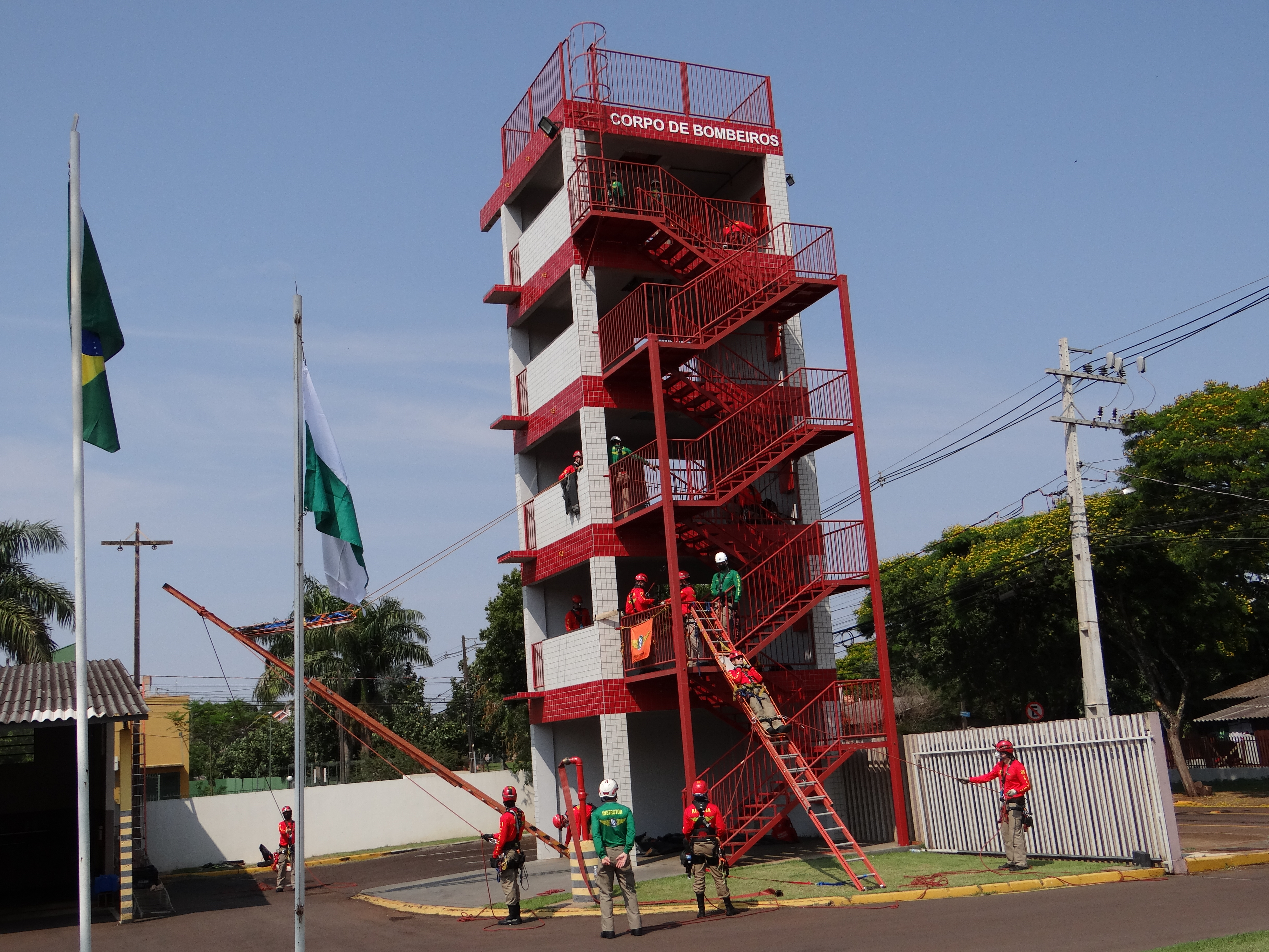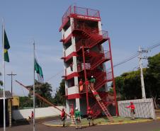 A instrução nesta 4ª semana ocorreu no Corpo de Bombeiros de Toledo, pois o mesmo dispõe de estrutura especializada, Torre de Treinamento, para a prática de Salvamento Vertical e Combate a incêndio.