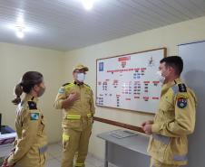 O Comandante do 3º Comando Regional de Bombeiros Militares (3º CRBM), Ten.-Cel QOBM Gelson Marcelo Jahnke, juntamente com os oficiais, Cap. QOBM Mateus Piovesan Montagner e Cap. QOBM Rafaela Tassi Montagner, realizaram na manhã desta segunda-feira, dia 27 julho, visita ao 12º Grupamento de Bombeiros (12º GB) e foram recebidos pelo comandante do GB, Major QOBM José Adriano Prado Spak, prefeito do município de Guarapuava, Exmo. Sr. César Silvestri Filho, e efetivo do grupamento, composto por oficiais e praças.