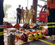 Foi realizada ainda a solenidade de entrega de materiais adquiridos com recursos do Governo do Estado do Paraná, que reforçarão o atendimento de ocorrências de combate a incêndio florestal, assim como equipamentos para atuação em ocorrências de produtos perigosos, Equipamentos de Proteção Respiratória (EPRs) e Equipamentos de Proteção Individual (EPIs) entre outros, totalizando investimento no valor de R$ 150.000,00.