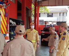 Dando sequência ao calendário de atividades de inspeções às unidades da área de articulação do 3º Comando Regional de Bombeiros Militares, o Ten. Cel. QOBM Gelson Marcelo Jahnke foi recebido hoje, dia 07 de julho de 2020, na Sede do Corpo de Bombeiros de Umuarama pelo Major QOBM Andrey Falkiner Fernandes, comandante do 6º Subgrupamento de Bombeiros Independente. A inspeção compreenderá também, no dia 08 de julho a visitação às instalações do Corpo de Bombeiros de Altônia e de Cruzeiro do Oeste.