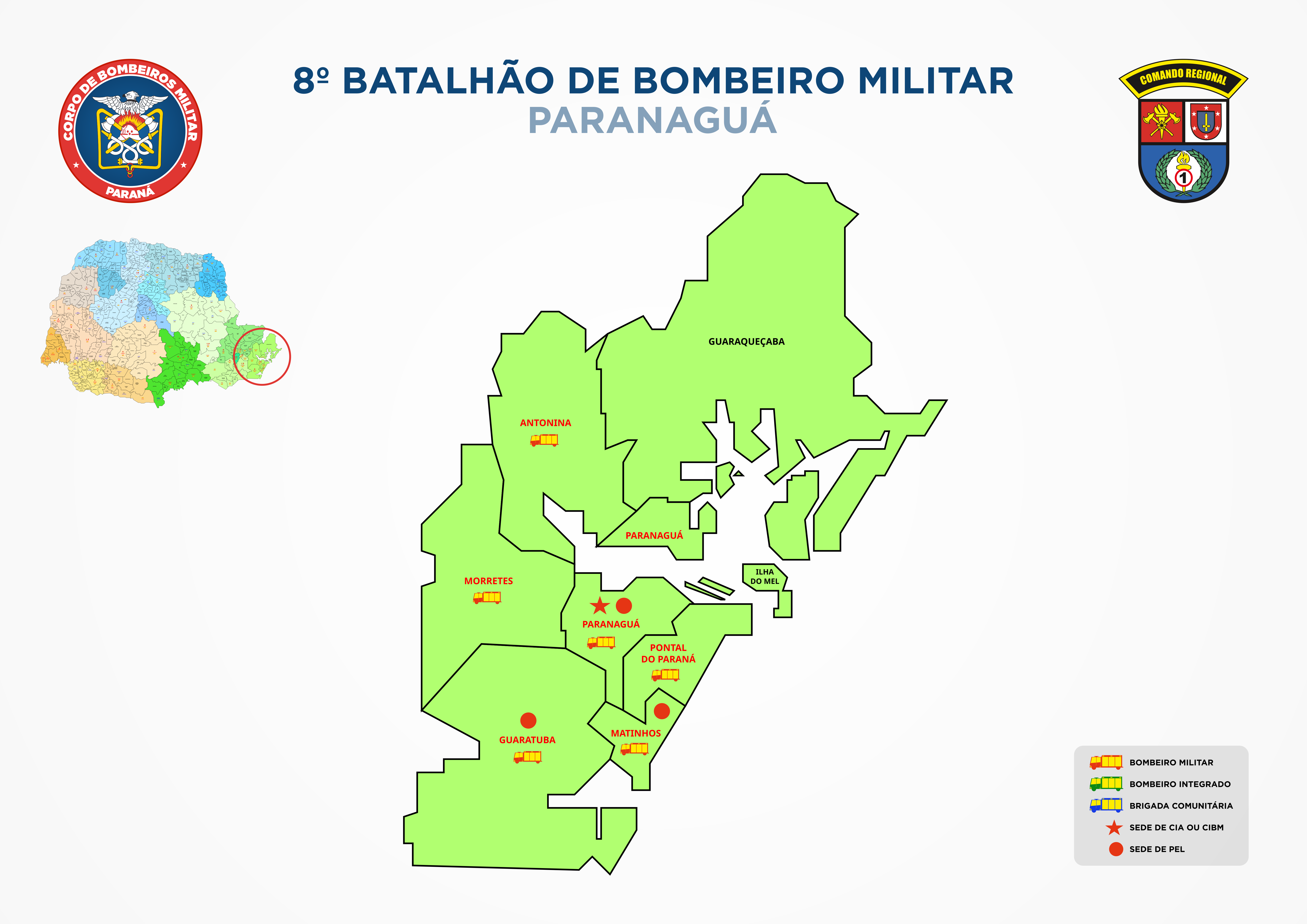 O 8° Batalhão de Bombeiros é a unidade responsável pela região do Litoral do Paraná.