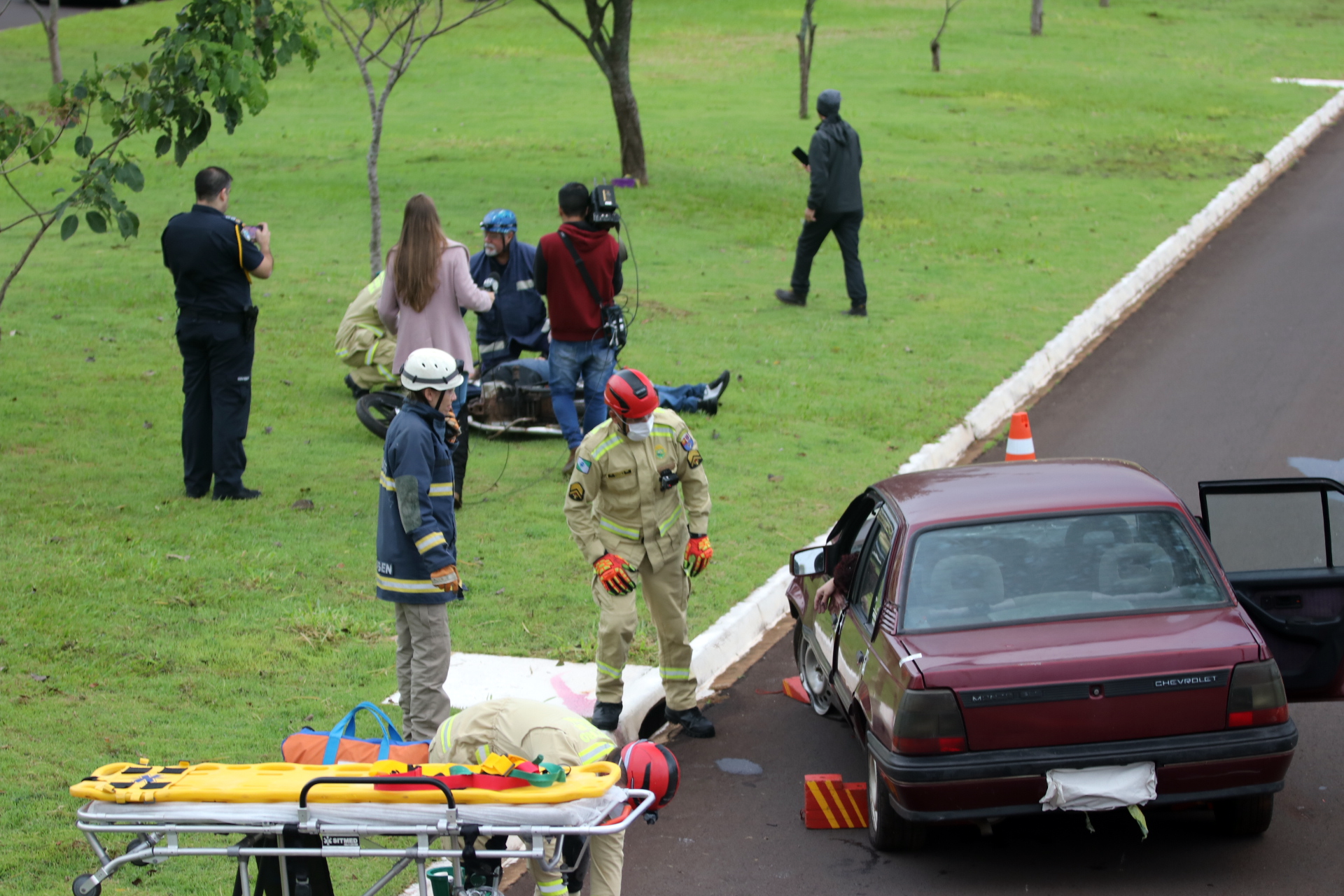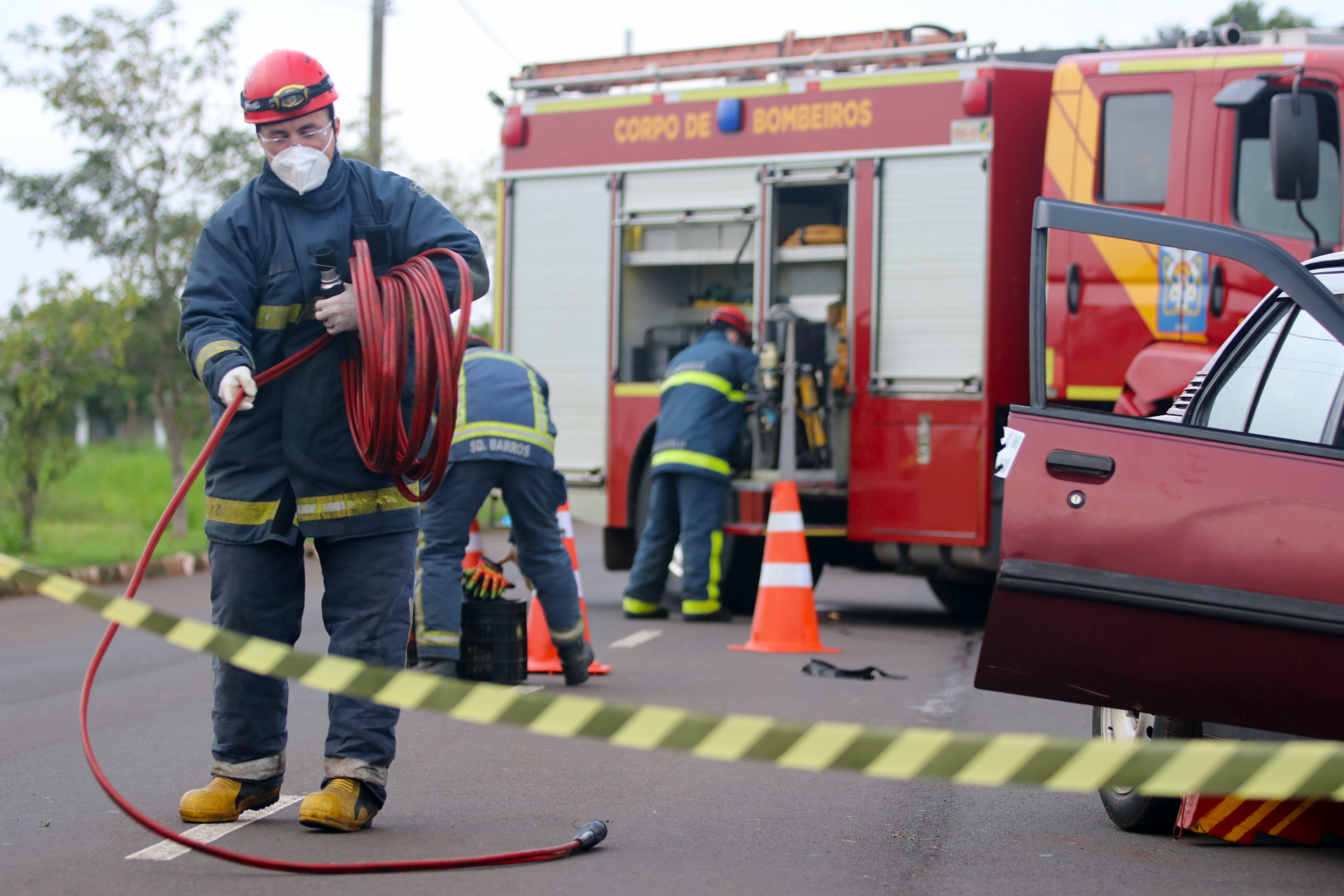 Na manhã de hoje (05), o 9º Grupamento de Bombeiros participou de um simulado de atendimento à um acidente de trânsito na Avenida Paraná, entre as Avenidas Florianópolis e Maceió, em Foz do Iguaçu.
