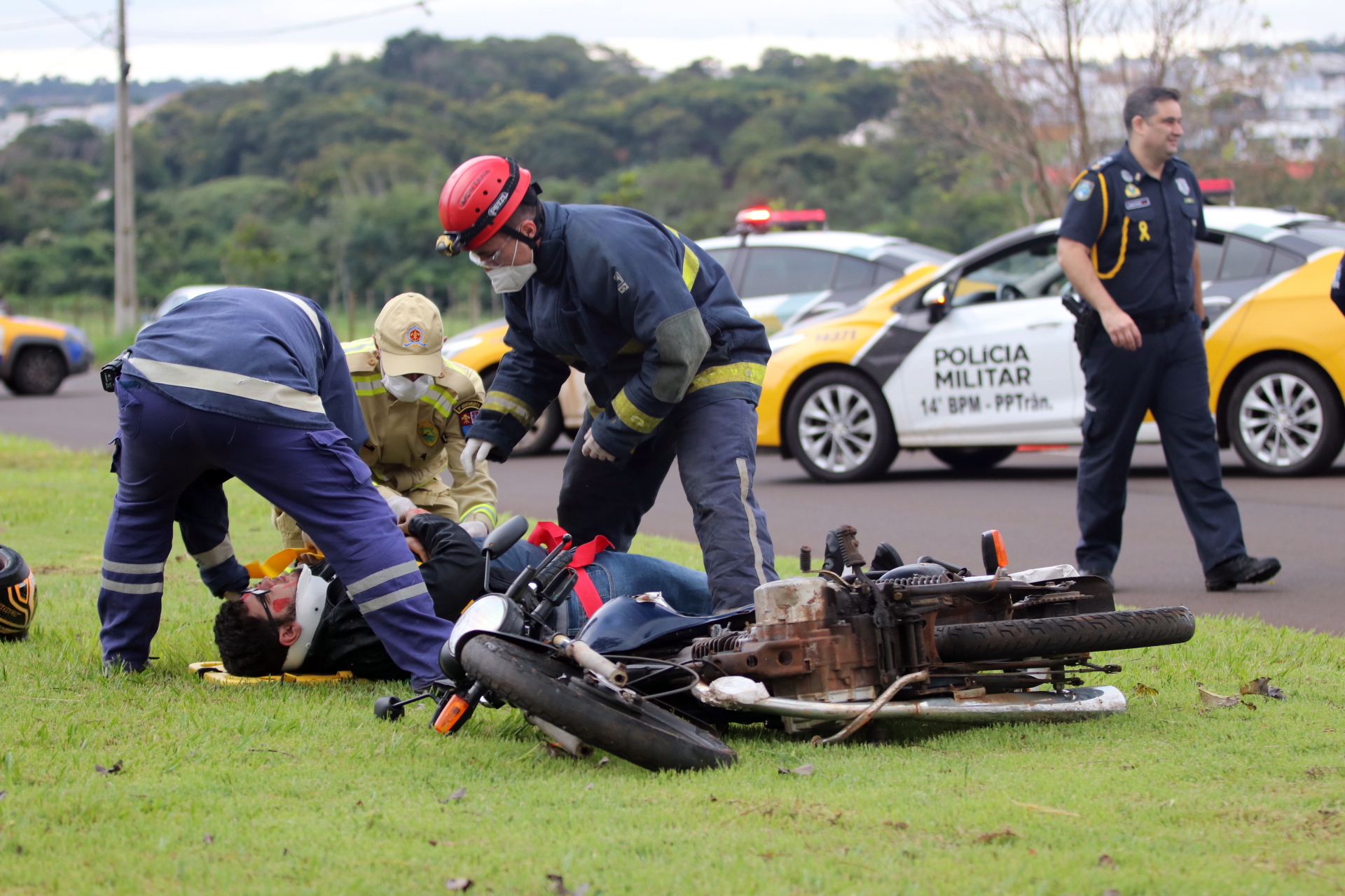 Por isso, o simulado expôs uma situação de colisão entre um carro e uma moto, com uma vítima em óbito - C4 (criança representada por boneco), uma vítima gravidade leve - C1 (motociclista) e uma vítima gravidade média - C2, com lesão em coluna (condutor do veículo). Agentes da PM e da Guarda Municipal, realizaram o isolamento da área e organizaram o trânsito para que os militares do Corpo de Bombeiros tivessem o acesso facilitado ao local do acidente. Com a chegada dos socorristas, os primeiros atendimentos foram prestados e as vítimas encaminhadas ao hospital.