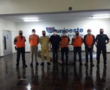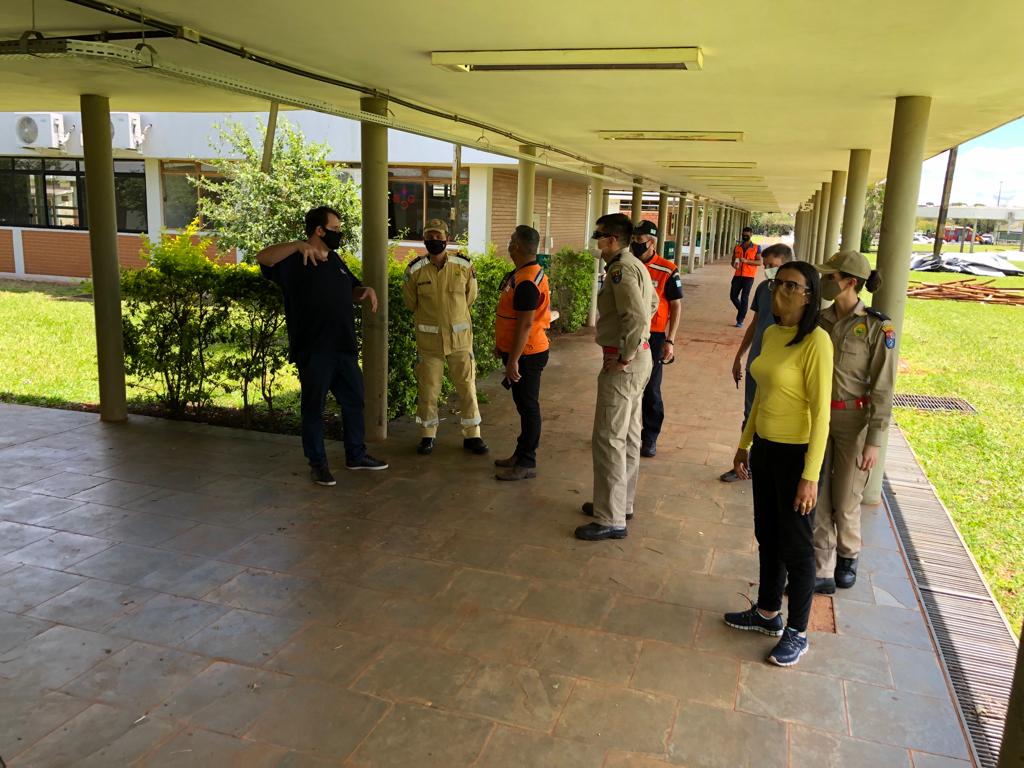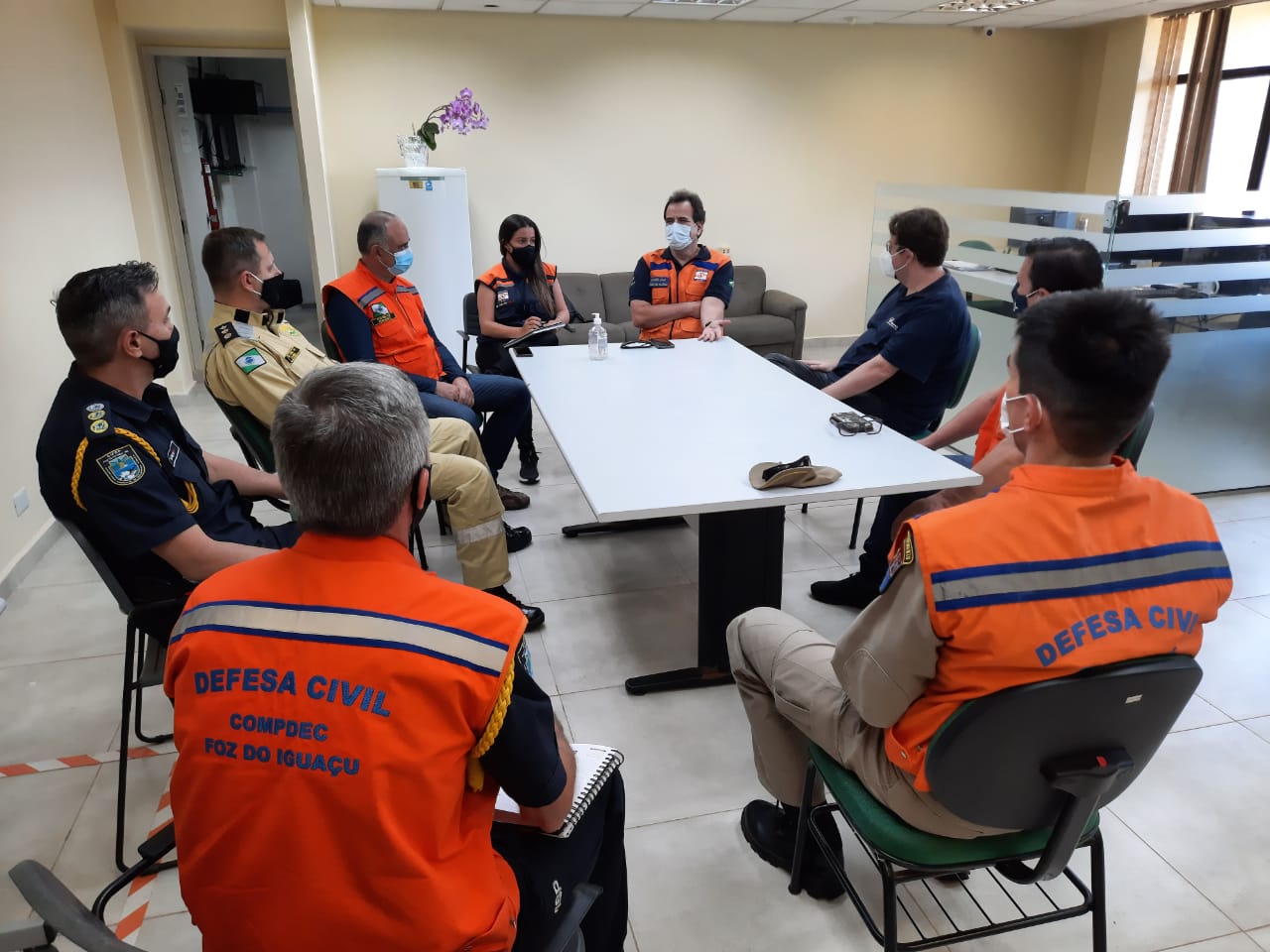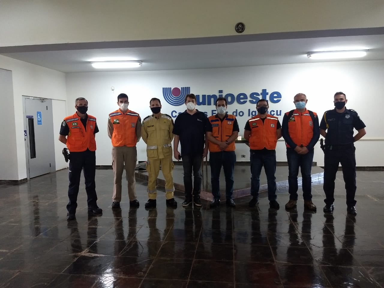 O Secretário Nacional de Proteção e Defesa Civil, Alexandre Lucas Alves, e o Coordenador Estadual da Defesa Civil, Cel. Fernando Schunig, também vieram à Foz do Iguaçu, realizando reconhecimento na UNIOESTE e participando de reunião com o prefeito, Chico Brasileiro.