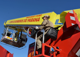Soa o alarme no Quartel do Comando-Geral do Corpo de Bombeiros Militar do Paraná (CBMPR), em Curitiba, anunciando mais um chamado. Para atender a emergência, a autoplataforma (caminhão com uma plataforma que atinge 54 metros de altura) acelera, com as sirenes ligadas, correndo contra o relógio.