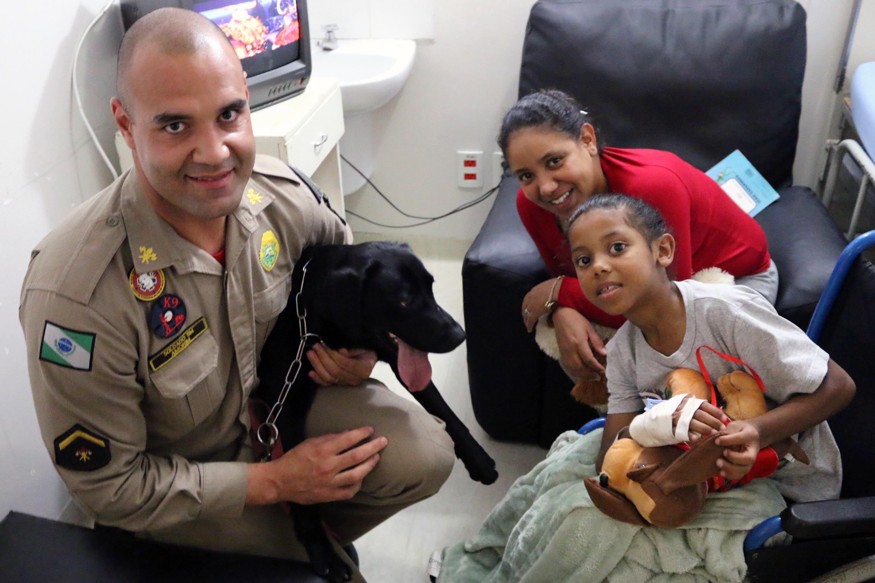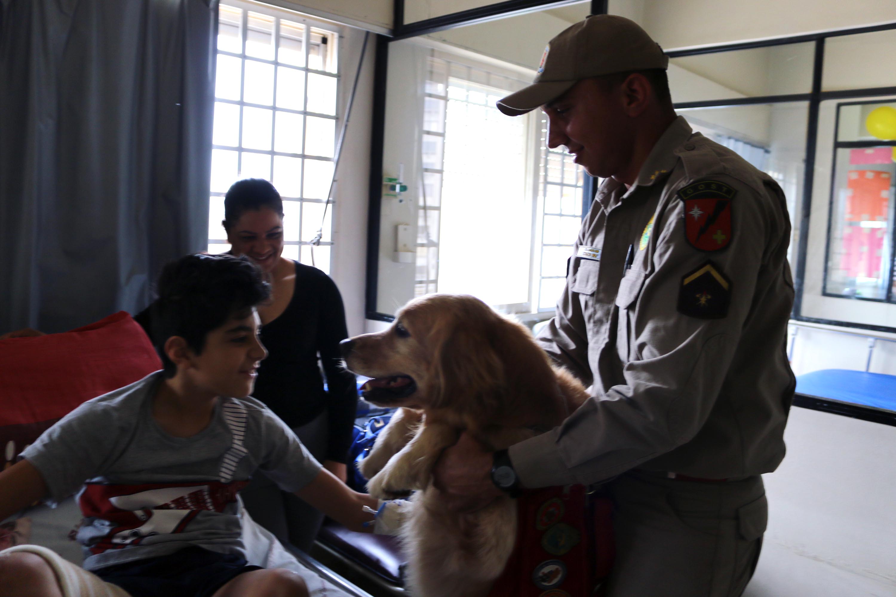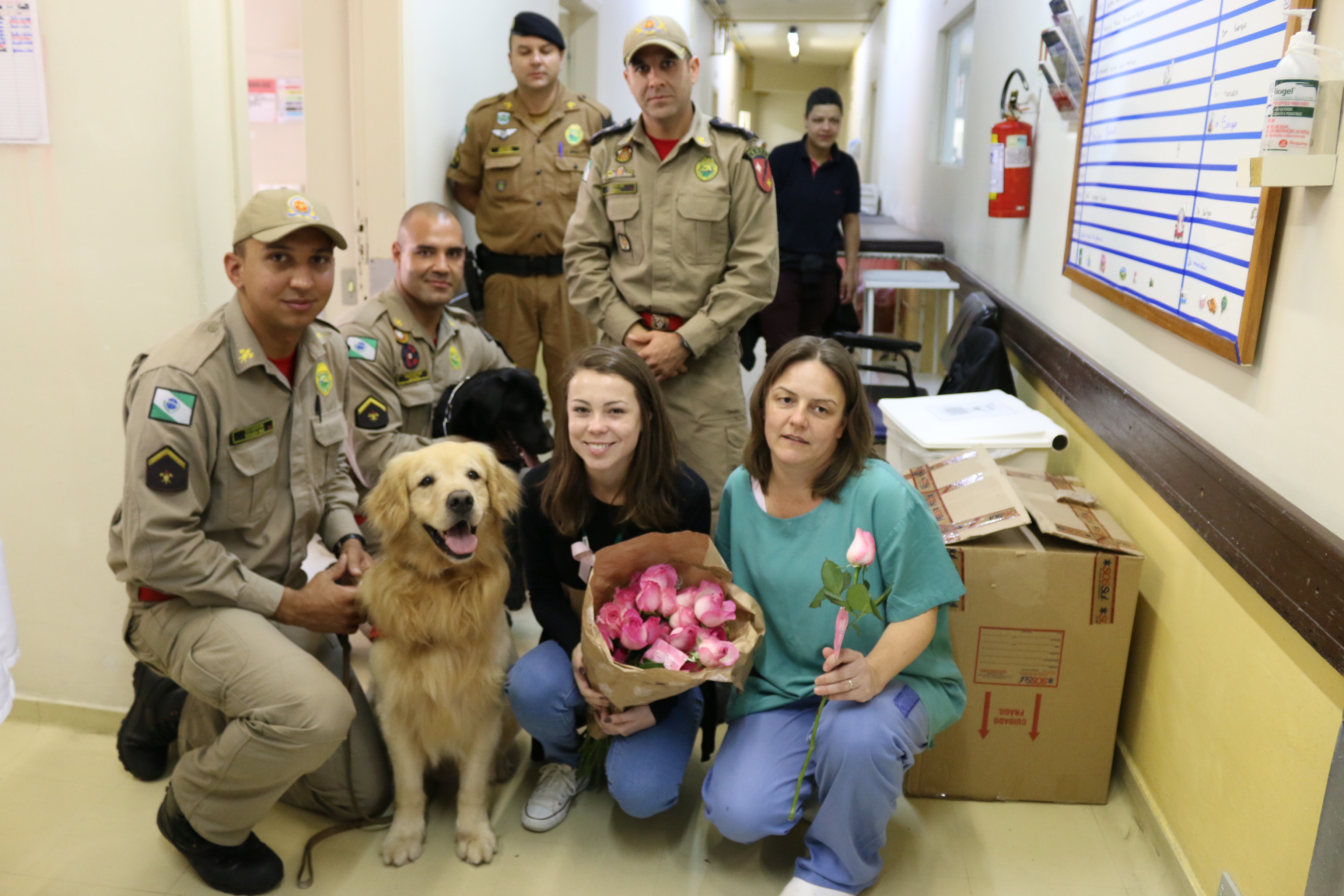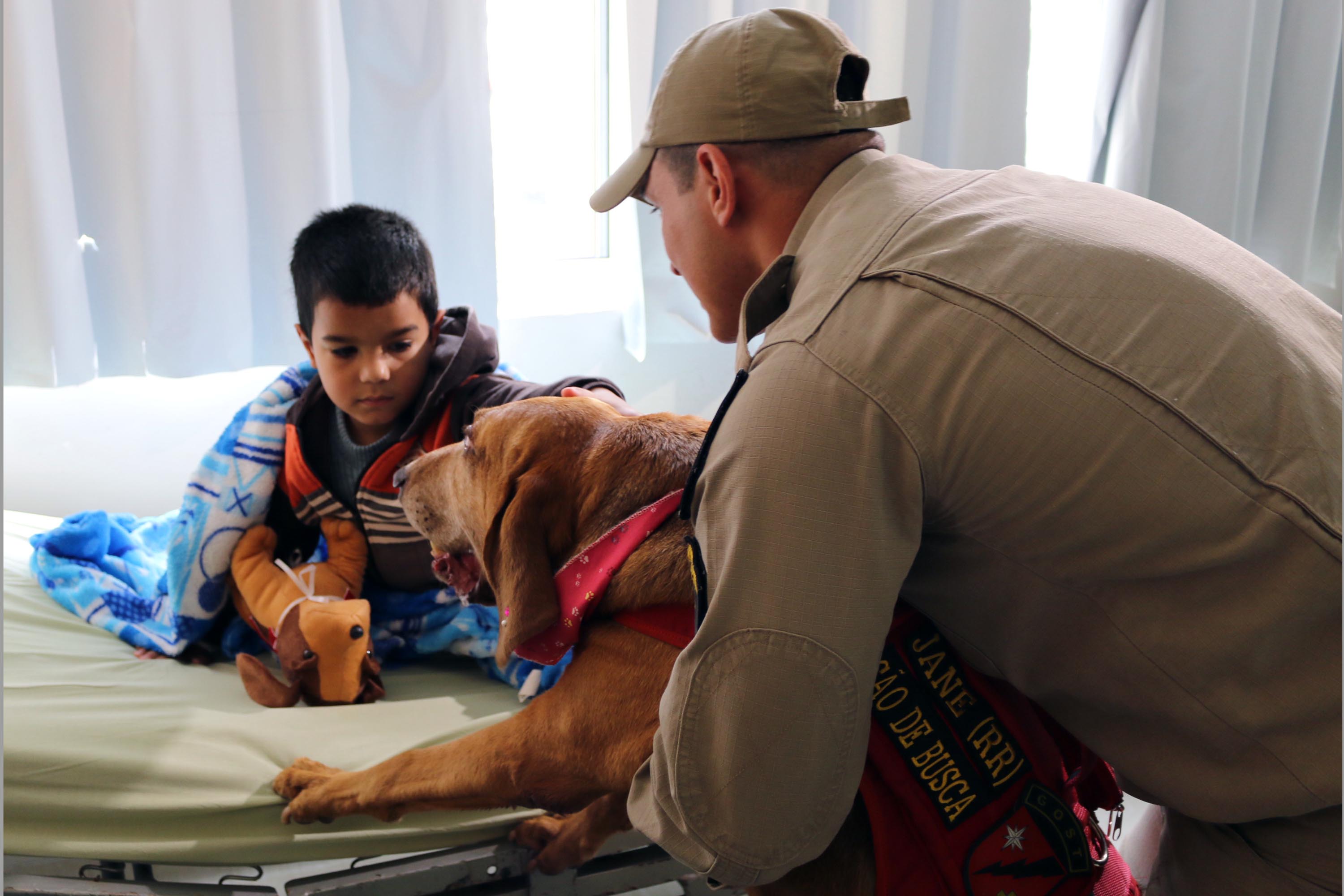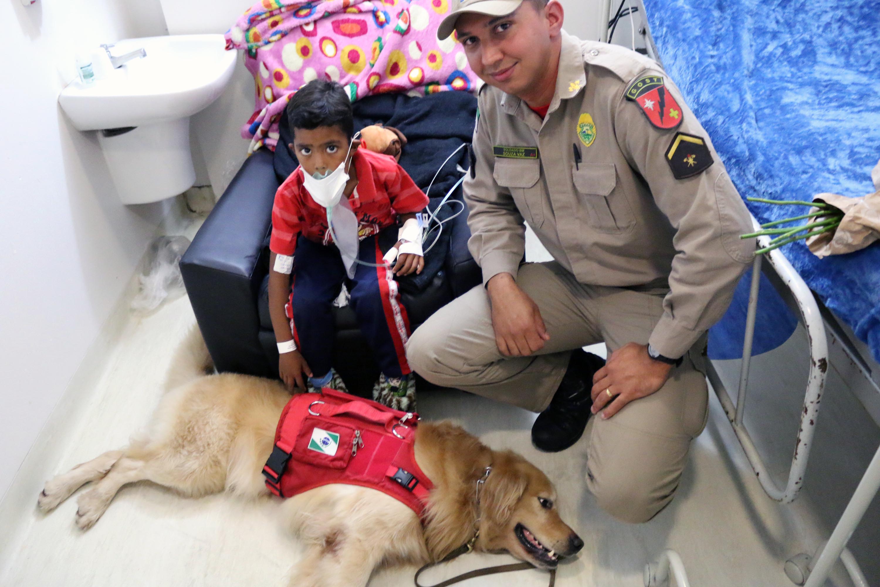 Ala de pediatria do Hospital Evangélico recebe visita de bombeiros e cães de busca em Curitiba