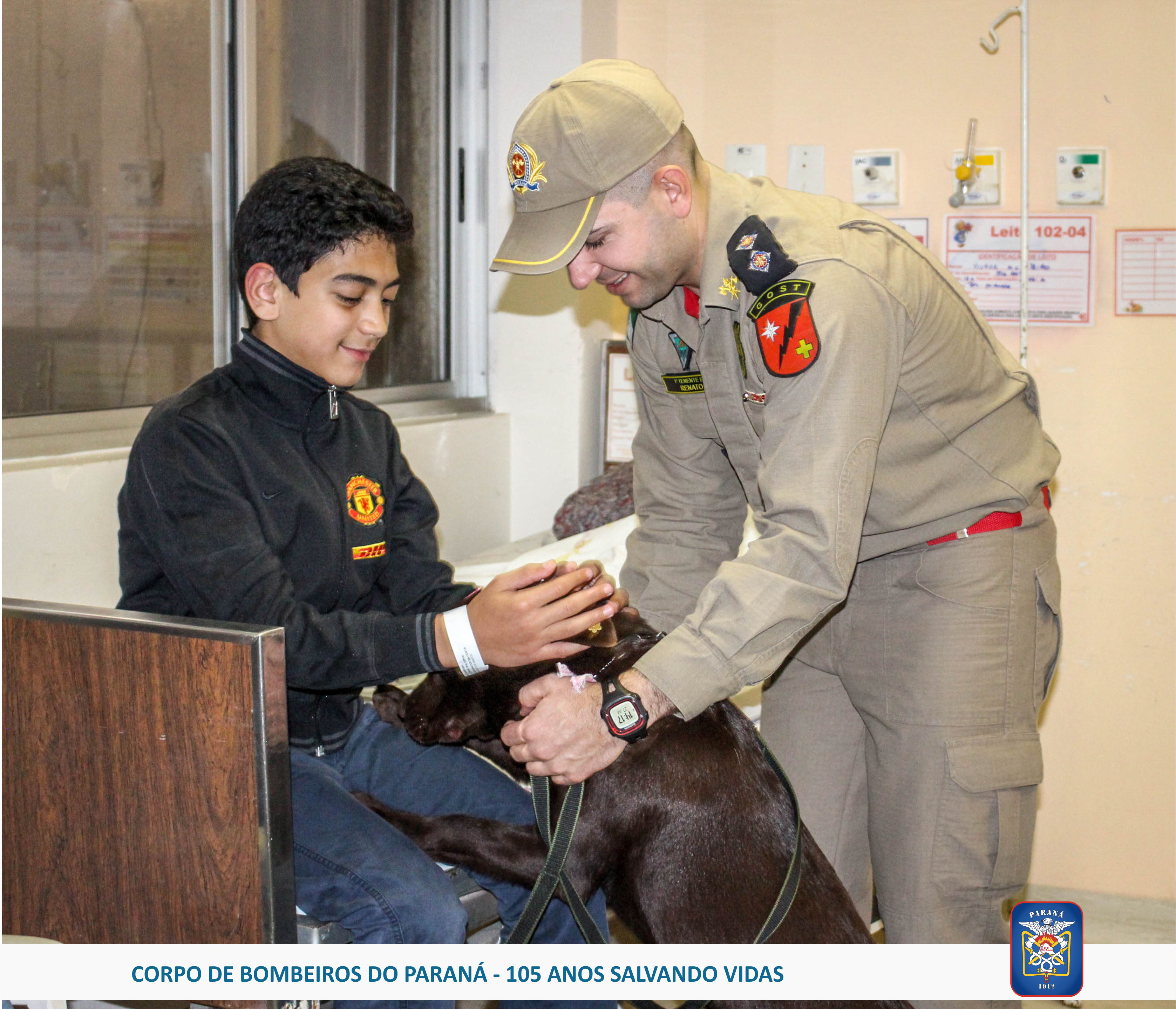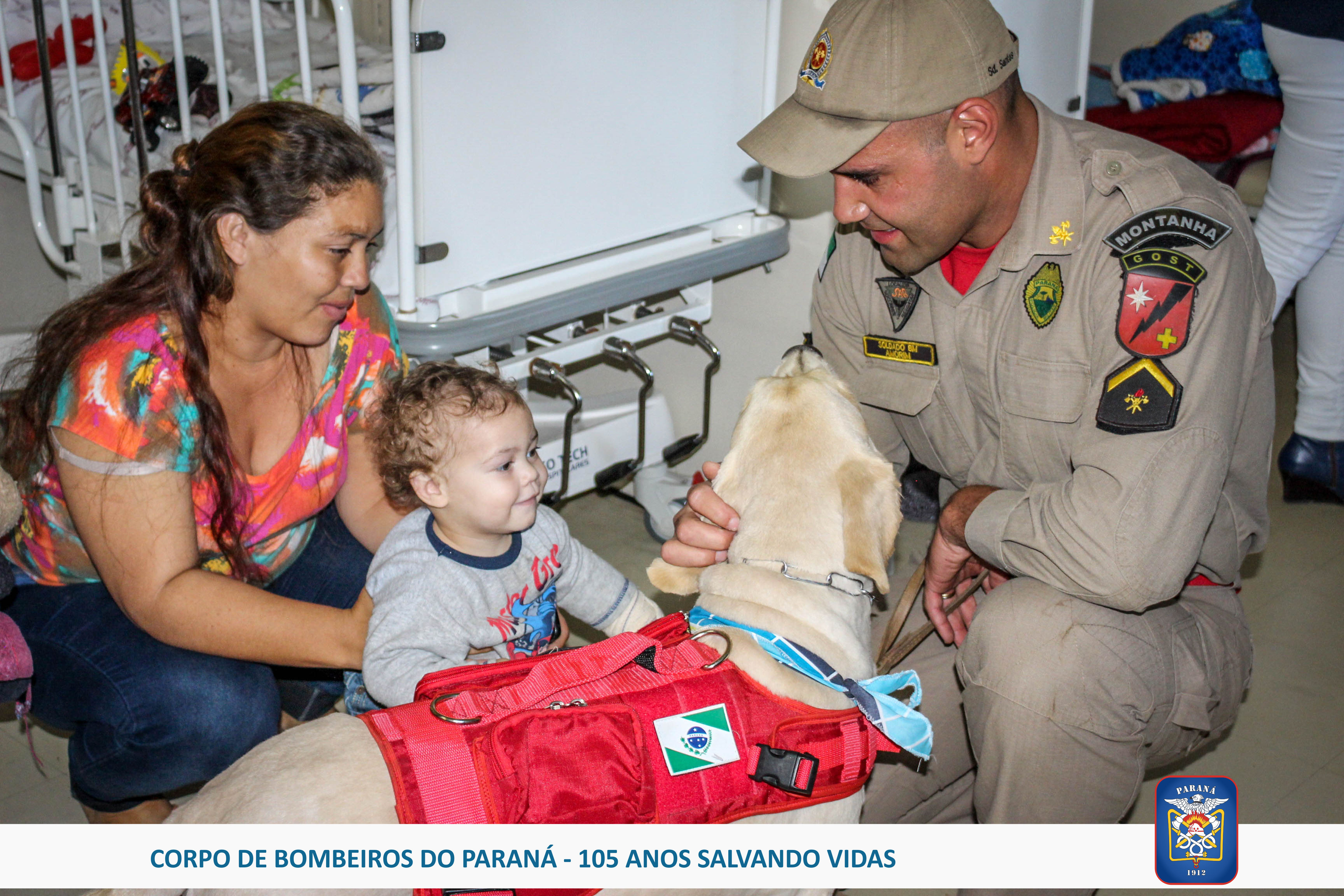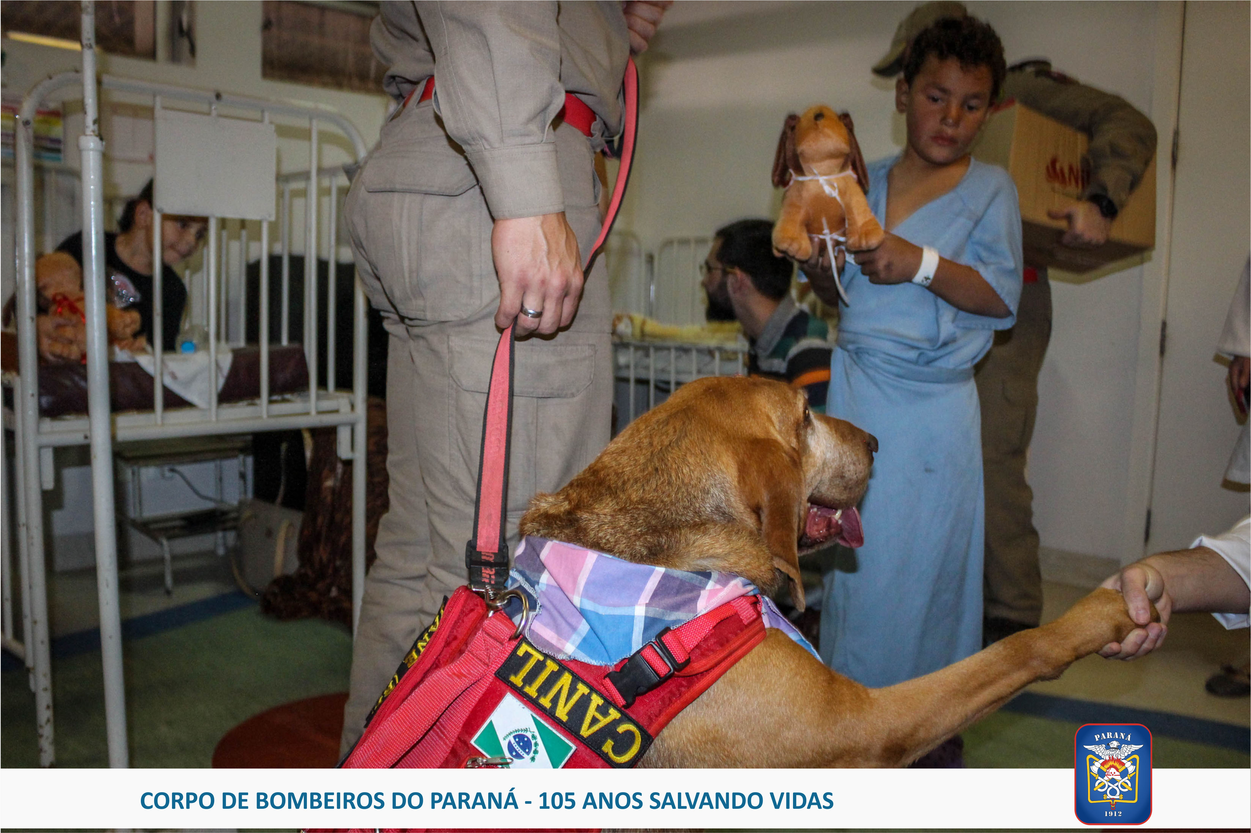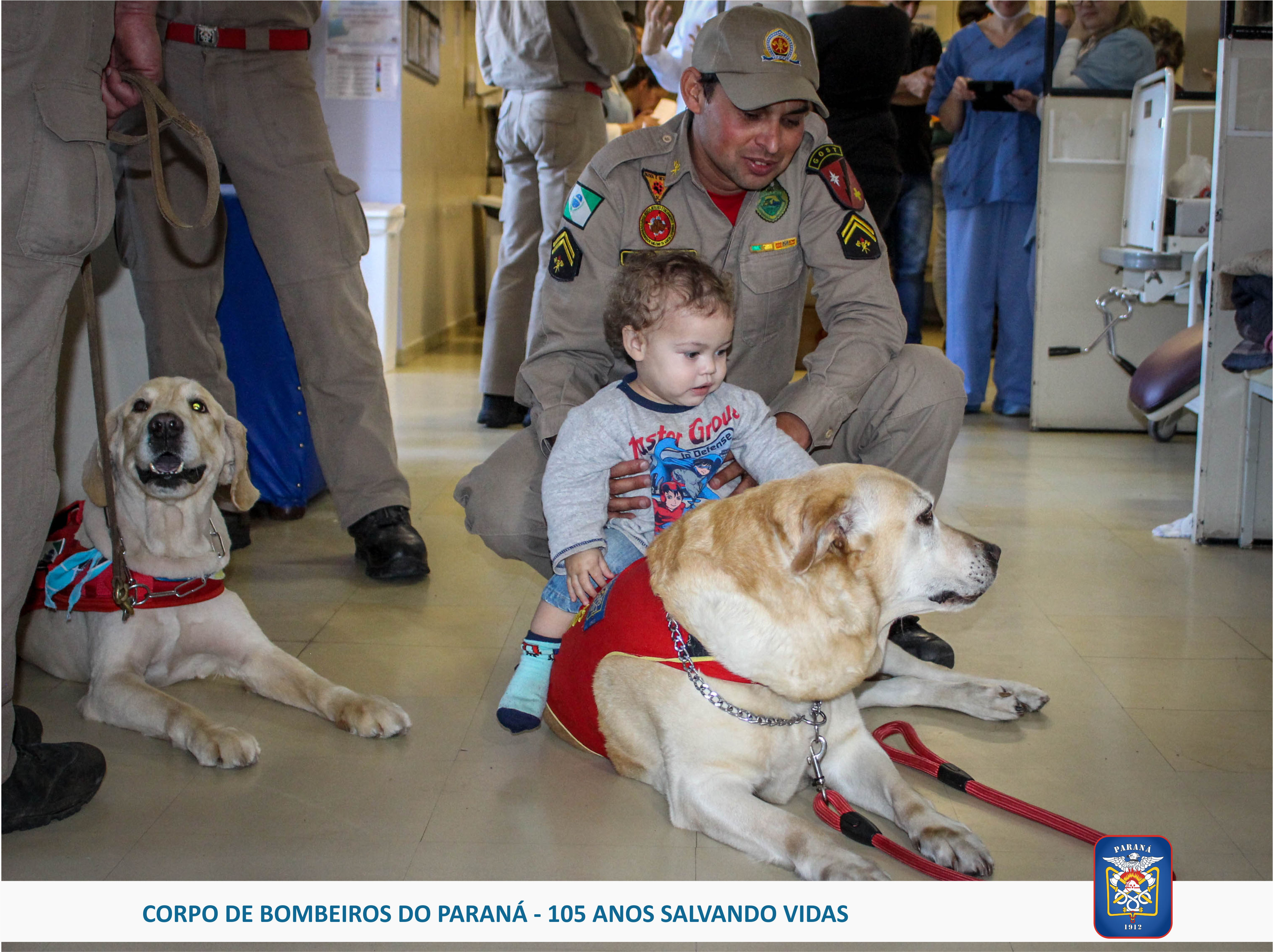 Bombeiros e Cães do GOST visitam crianças em hospital de Curitiba