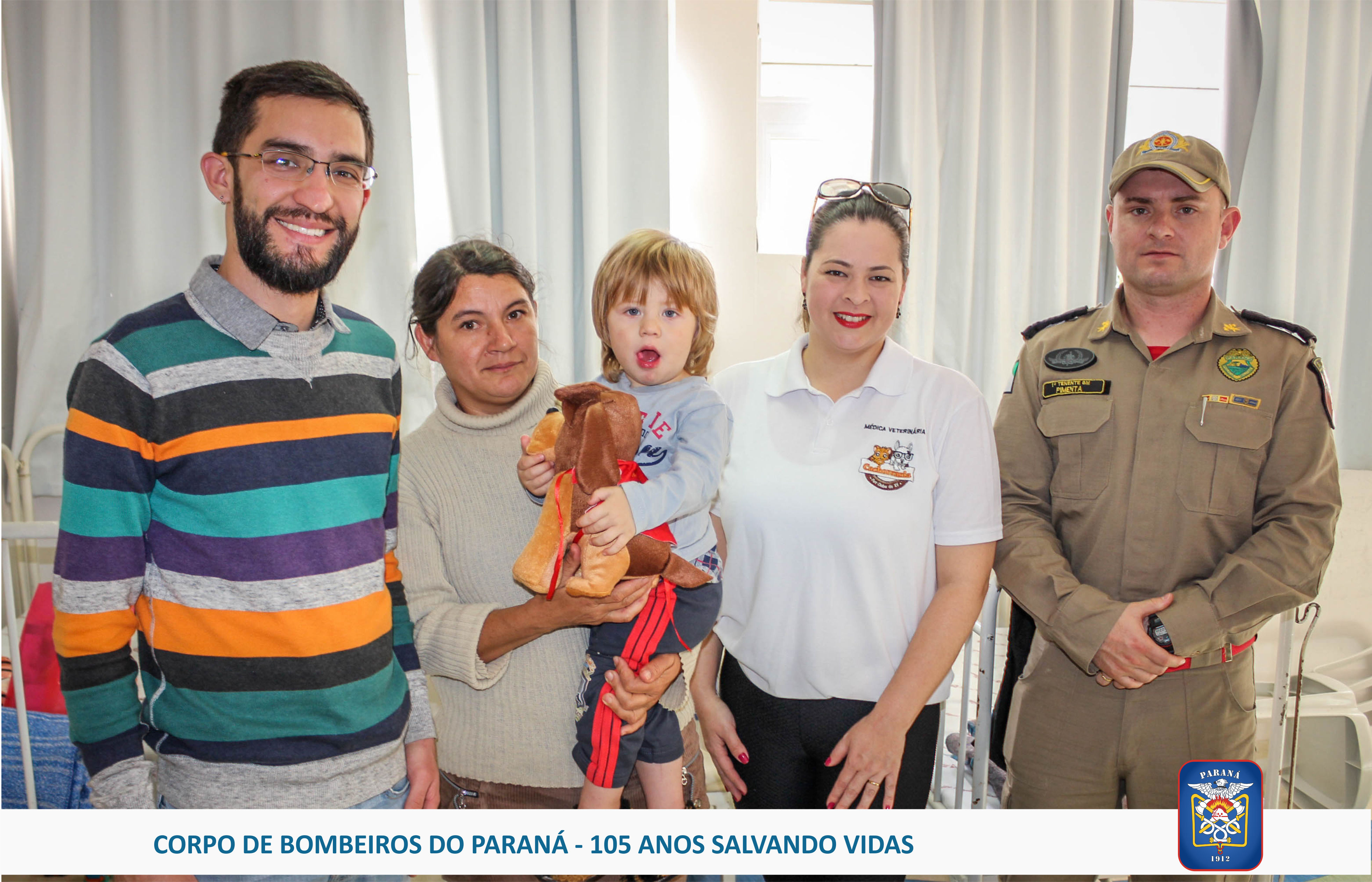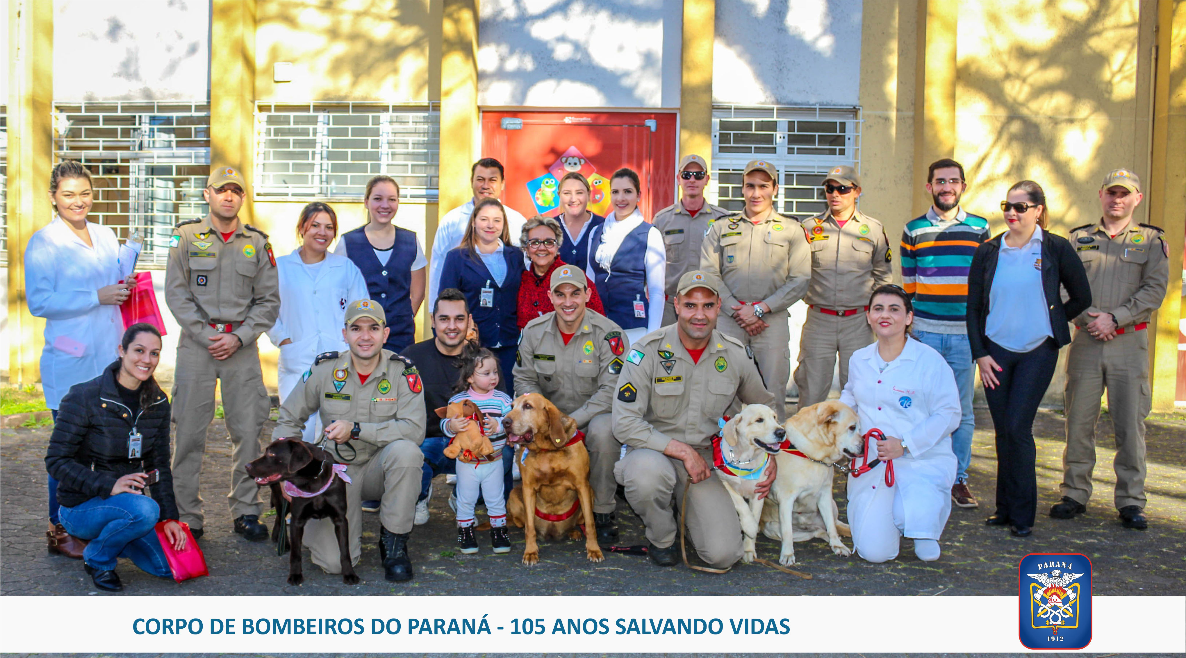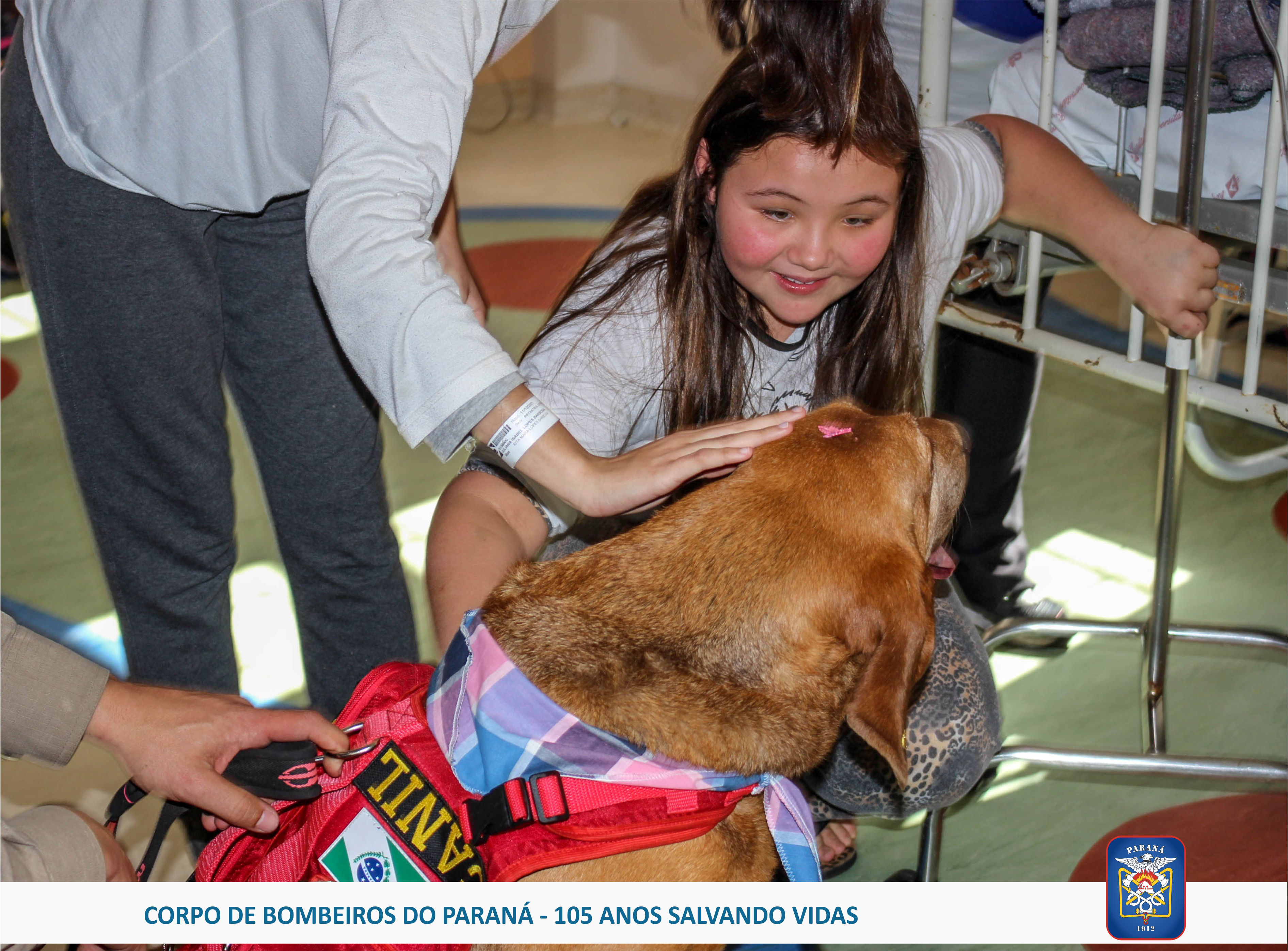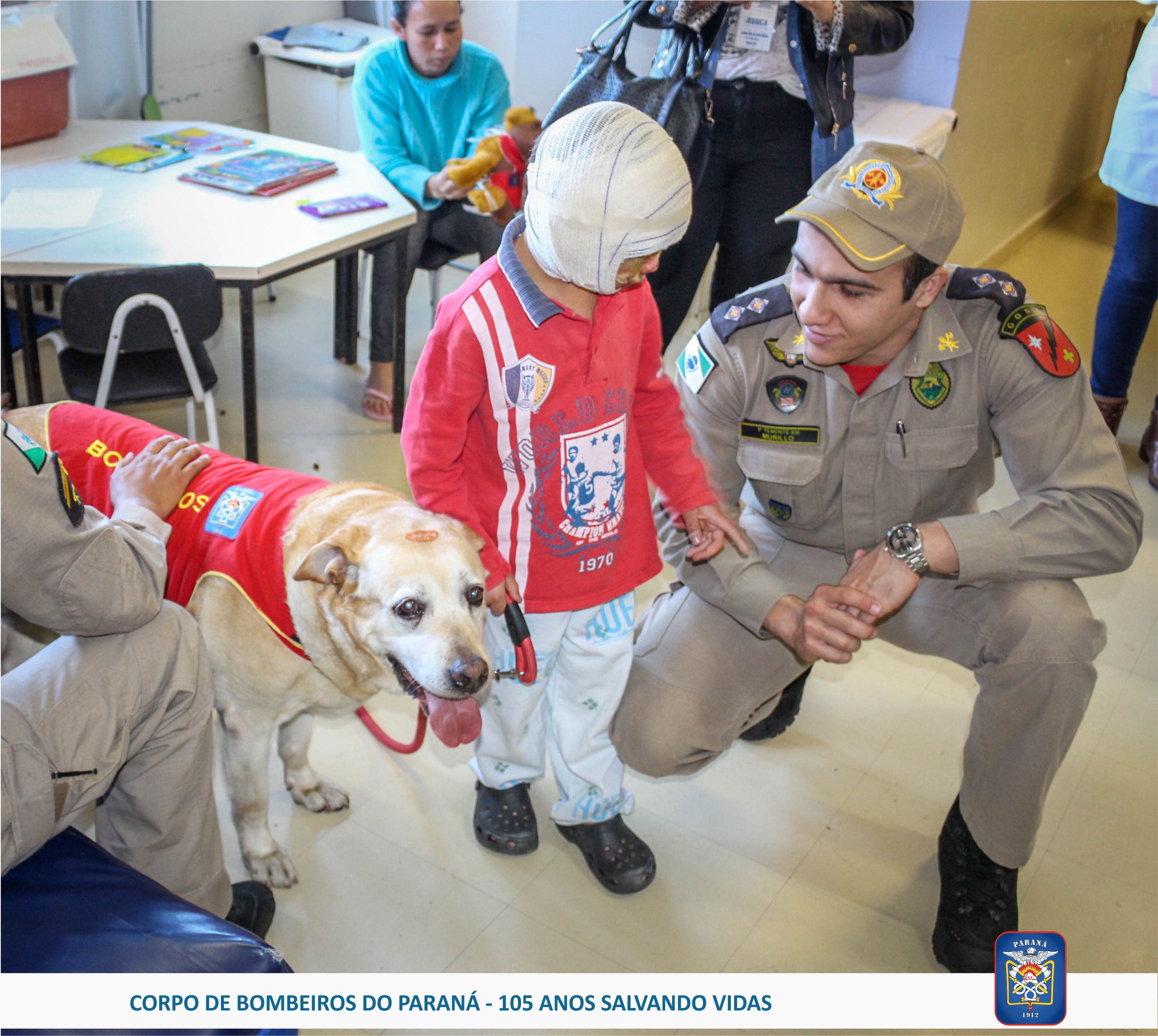 Bombeiros e Cães do GOST visitam crianças em hospital de Curitiba