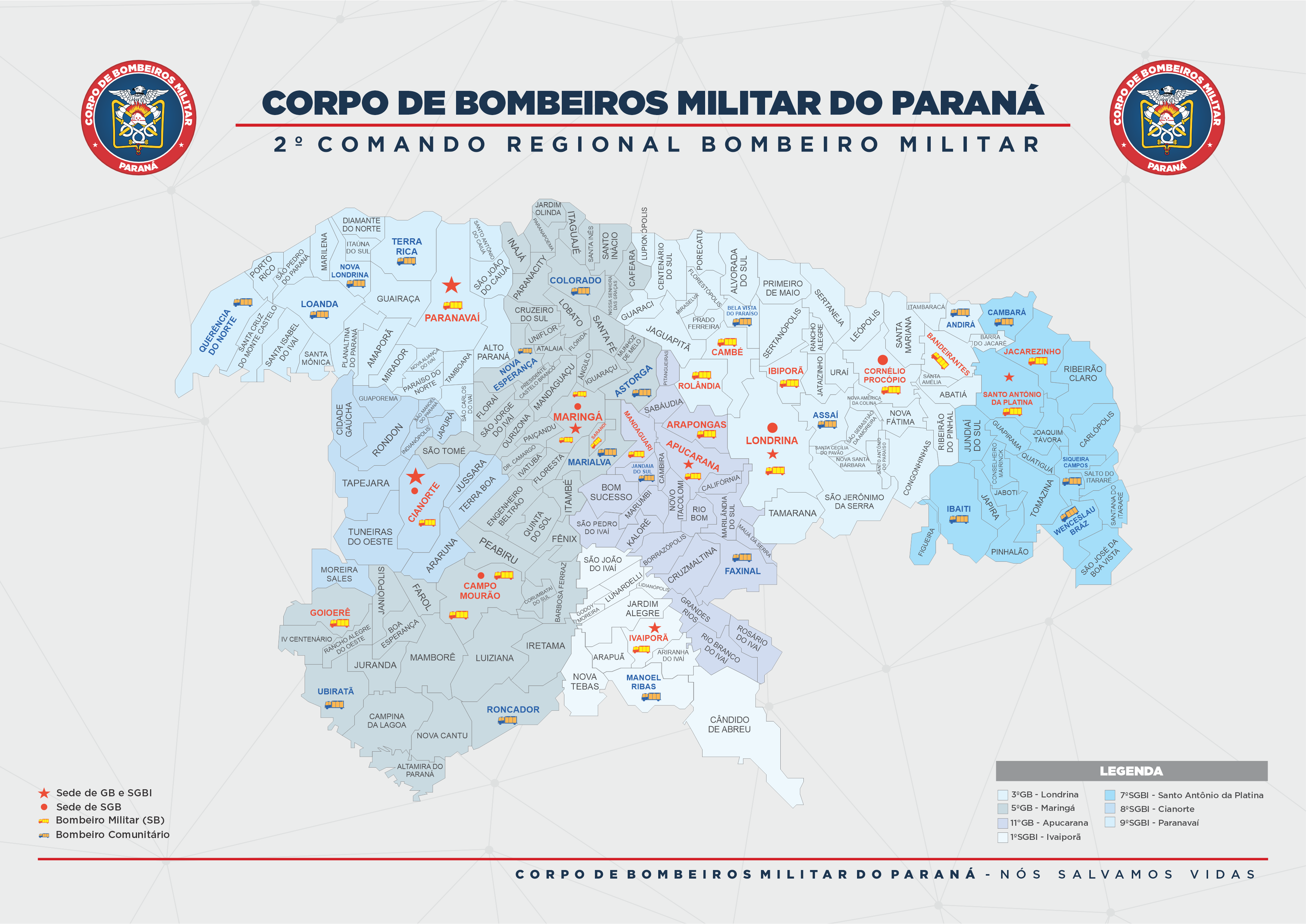 Mapa de Atuação dos Comandos Regionais Bombeiro Militar