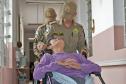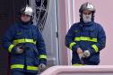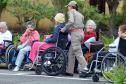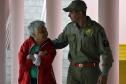 Moradoras e funcionários de asilo em Curitiba (PR) participam de simulação de evacuação com o Corpo de Bombeiros