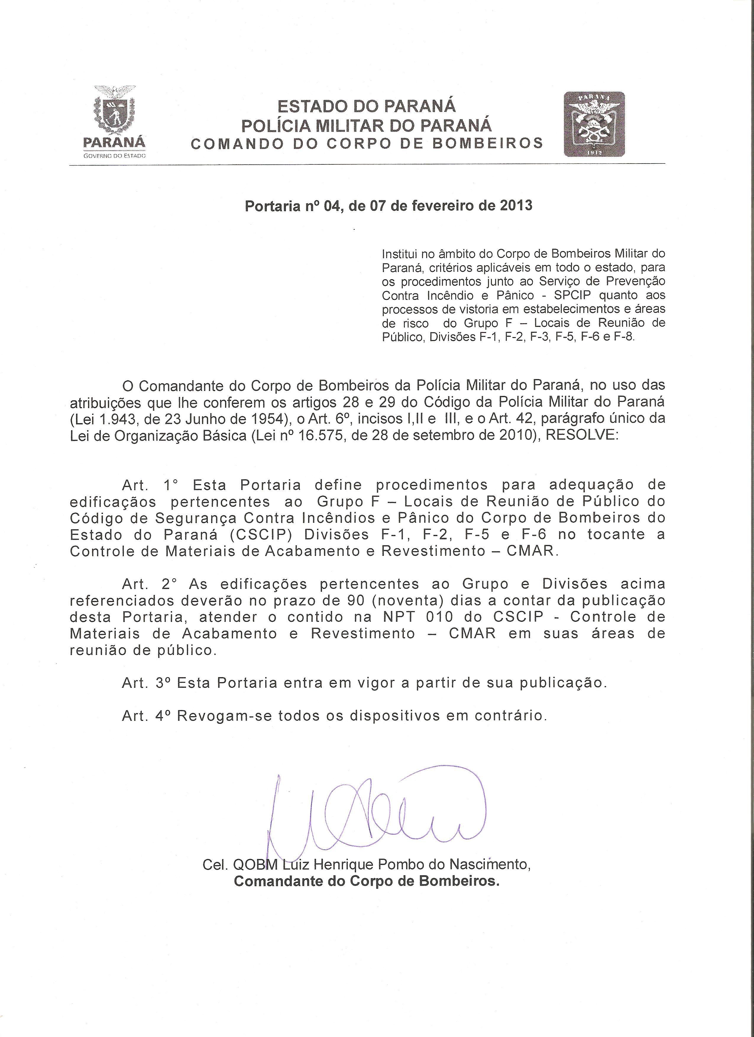 Portaria nº 04, de 07 de fevereiro de 2013