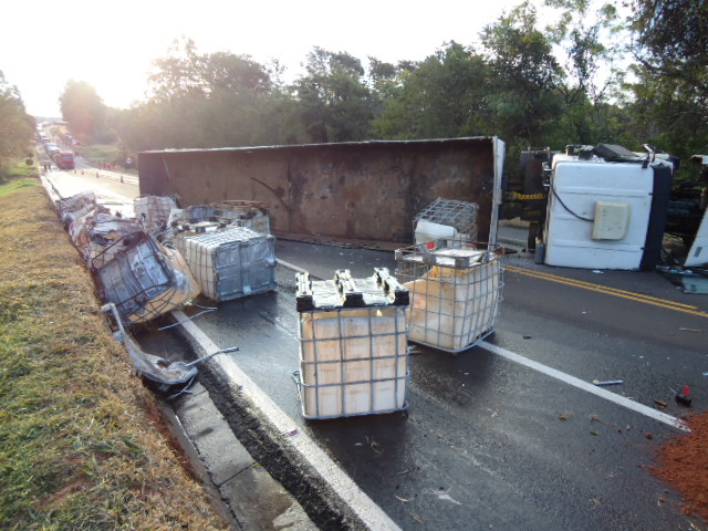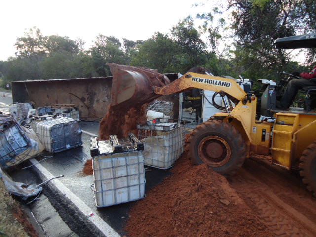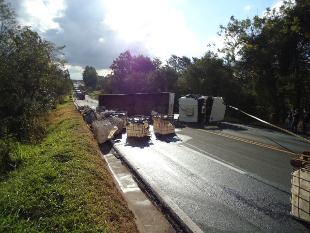 Tombamento de carreta que transportava produto perigosos é atendido pela 5ª COREDEC