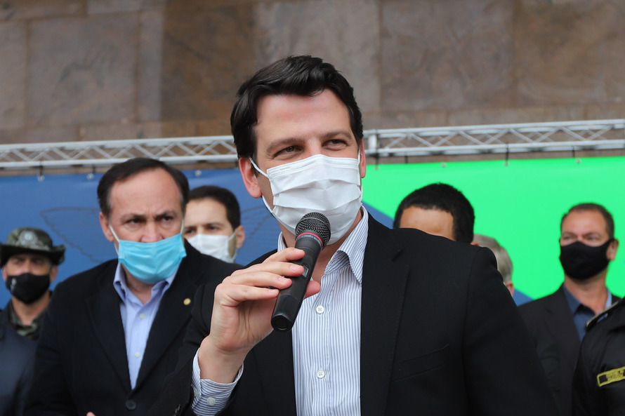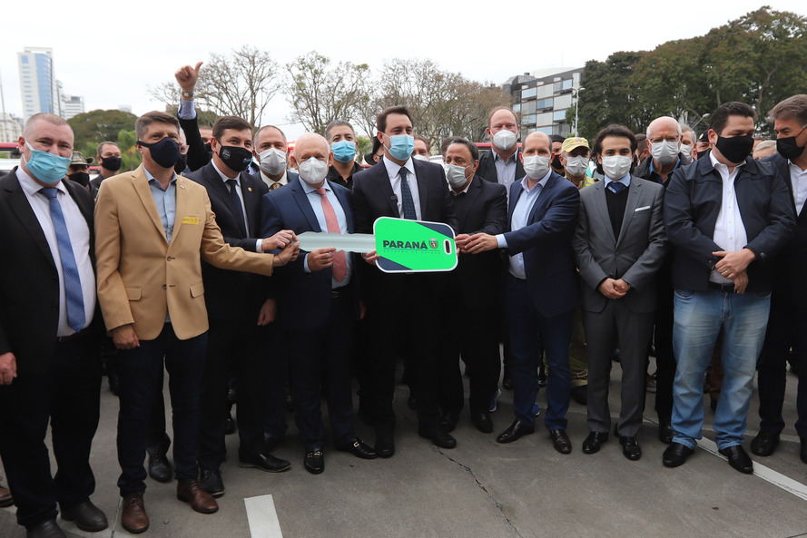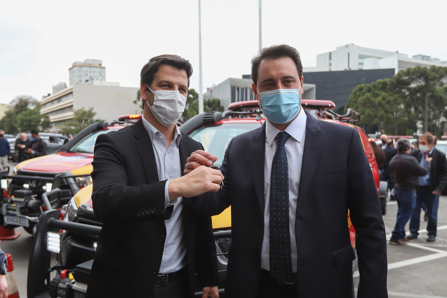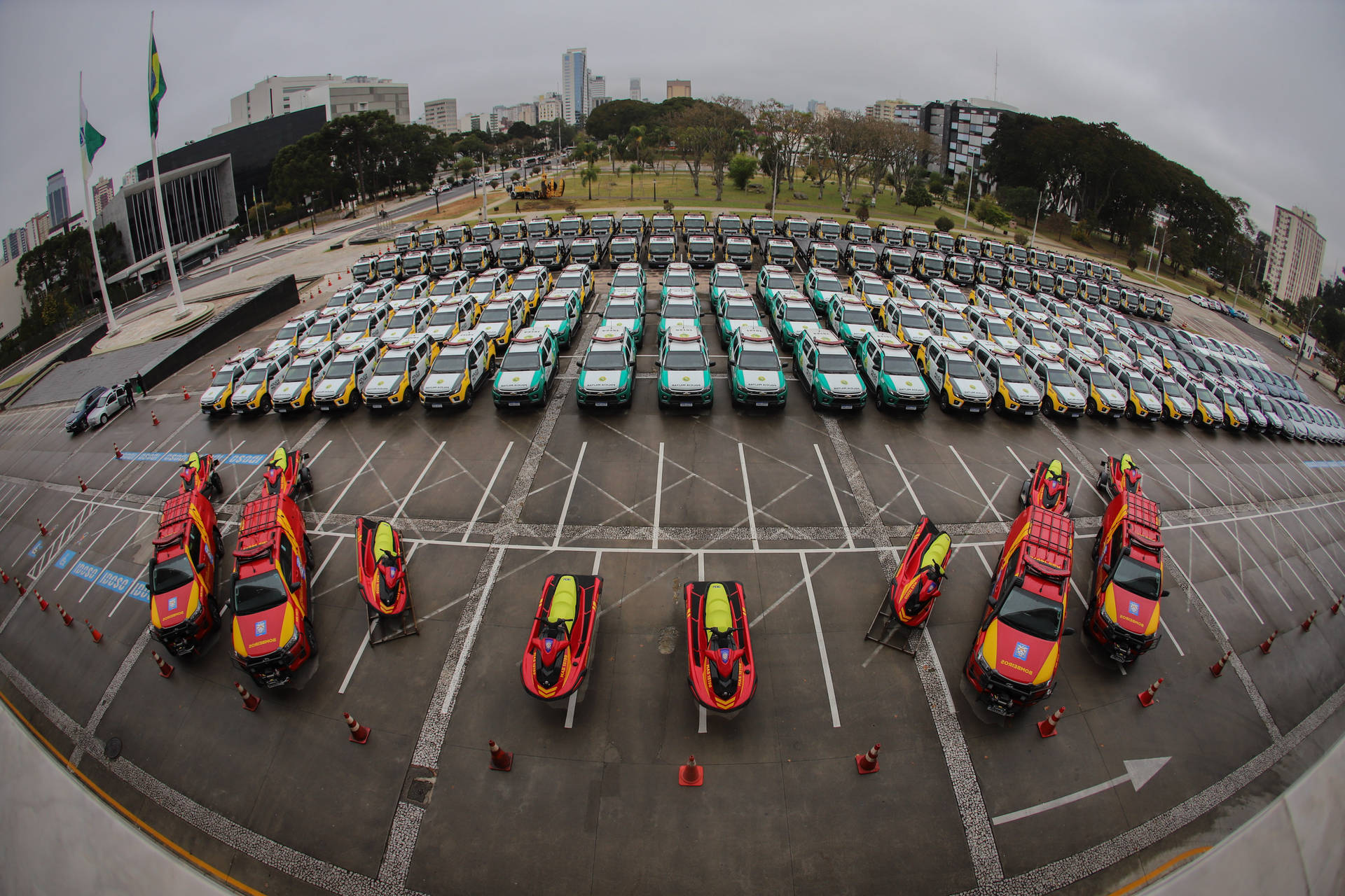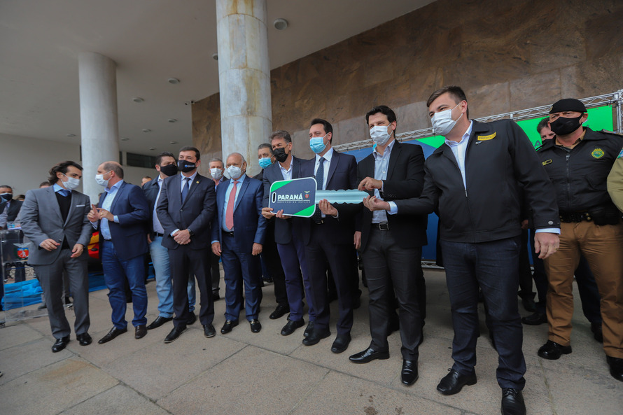O Governo do Paraná reforça o planejamento de renovação da frota de veículos das forças de segurança pública. Nesta quarta-feira (11), o governador Carlos Massa Ratinho Junior entregou novas viaturas para a Policia Militar, Policia Civil e Corpo de Bombeiros. Na foto, o viceprefeito de Curitiba, Eduardo Pimentel