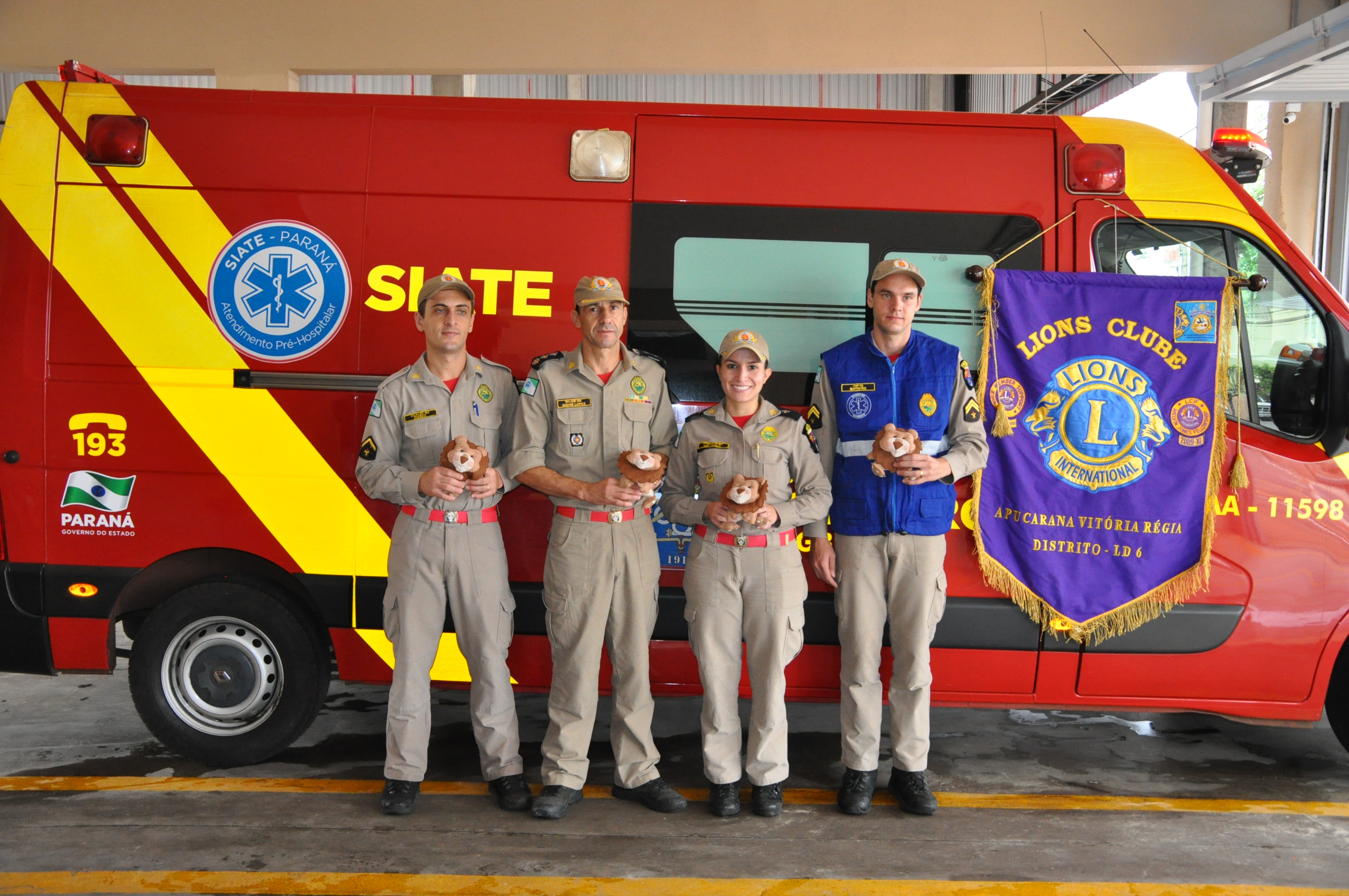 Nesta sexta-feira, 5 de abril, foi lançado oficialmente o projeto “Leões do Corpo de Bombeiros”, parceria entre o Lions Clube Vitória Régia e o 11º Grupamento de Bombeiros, que entregará ursinhos de pelúcia para as crianças atendidas pelas ambulâncias do Serviço Integrado de Atendimento ao Trauma em Emergência de Apucarana.