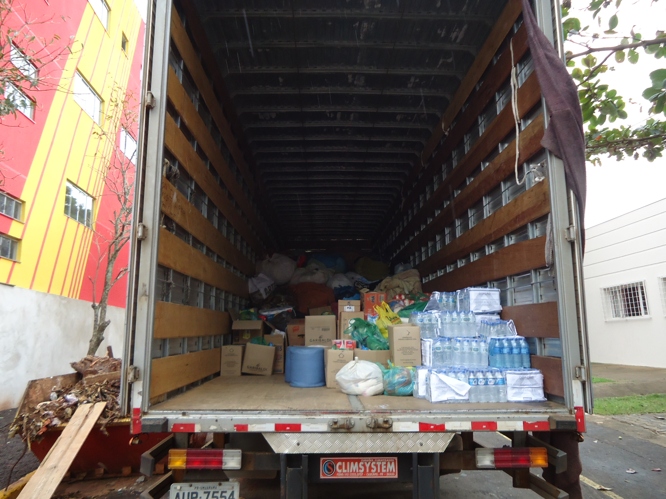 O transporte dos donativos foi realizado gratuitamente pela empresa Estofados Hellen, com sede na cidade de Umuarama.