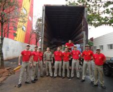 Nesta segunda-feira (16) os militares do 6º SGBI carregaram um caminhão de donativos com destino a cidade de Guarapuava, onde serão distribuídos para as vítimas da chuva de junho.