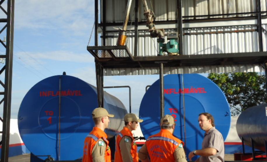 A Empresa possui capacidade de armazenamento de 85 mil litros de Óleo Diesel, número da ONU 1202, possui Projeto de Prevenção de Incêndios aprovado pelo Corpo de Bombeiros e está regularizada com o Setor de Prevenção. A fiscalização ocorreu em cumprimento ao cronograma anual de fiscalizações de Manuseio e Armazenagem de Produtos Perigosos, são sorteadas 03 (três) empresas durante o ano; foi realizada somente por integrantes do Corpo de Bombeiros, 01 2º Tenente, 01 Subtenente e um Asp. Of. e um Soldado, objetivando a orientação e o entrosamento com as empresas locais e Corpo de Bombeiros (Defesa Civil), no sentido de conhecer o potencial de risco de cada empresa.