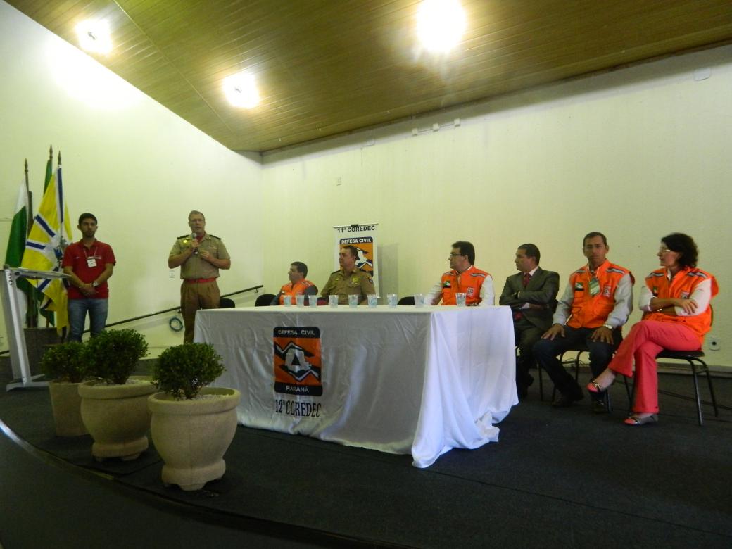 Foram ministradas palestras pelo Senhor Coordenador Executivo de Defesa Civil Estadual, Tenente-Coronel Edemilson de Barros, pelo Capitão Genuíno Dalponte (11ª CORPDEC) e 1° Tenente Eriksen Mafra (12ª CORPDEC) e pelo Presidente da COMPDEC de Francisco Beltrão e Secretário de Urbanismo, Senhor José Carlos Vieira.