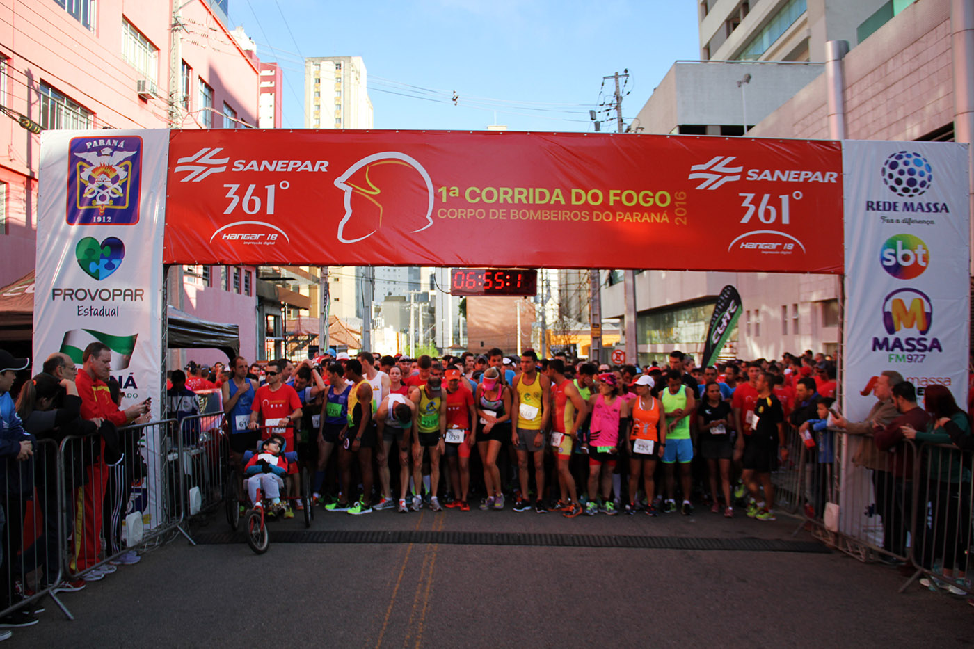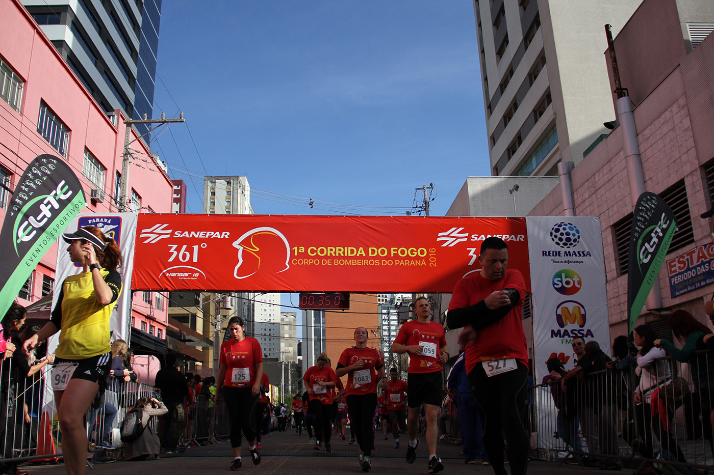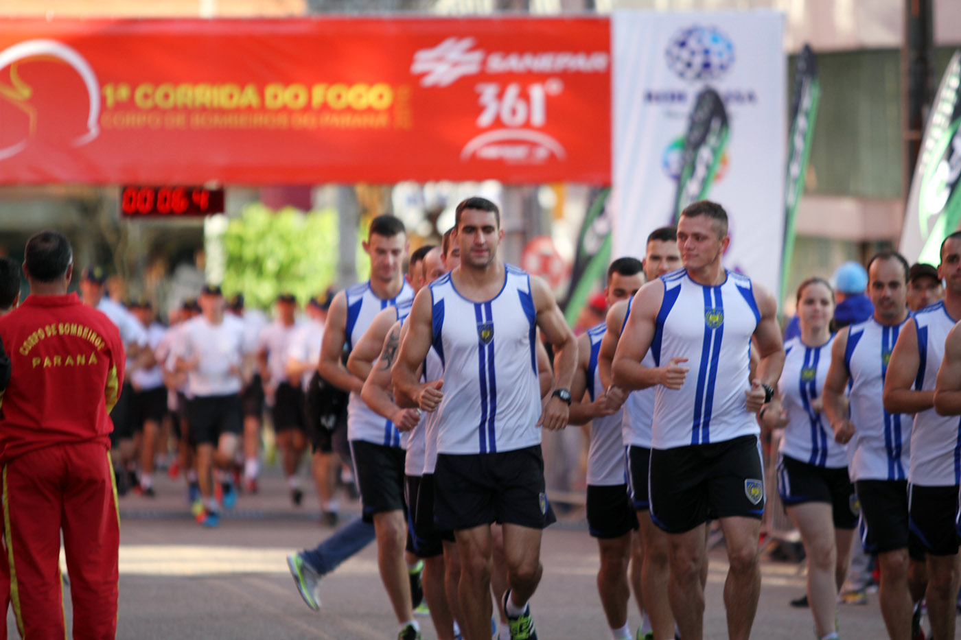 Mais de 2,2 mil atletas participaram da 1ª Corrida do Fogo que faz parte das comemorações dos 104 anos do Corpo de Bombeiros da Polícia Militar do Paraná. A prova teve a largada em frente ao Quartel do Comando do Corpo de Bombeiros, na área central de Curitiba (PR), na manhã desta quarta-feira (12/10) e reuniu milhares de pessoas que parabenizaram a instituição pelo excelente serviço prestado em prol da comunidade paranaense. Ao término da atividade, que foi promovida em parceria com o Governo do Estado e a Provopar Estadual, houve a entrega das premiações e todos puderam tirar fotos nas viaturas expostas.