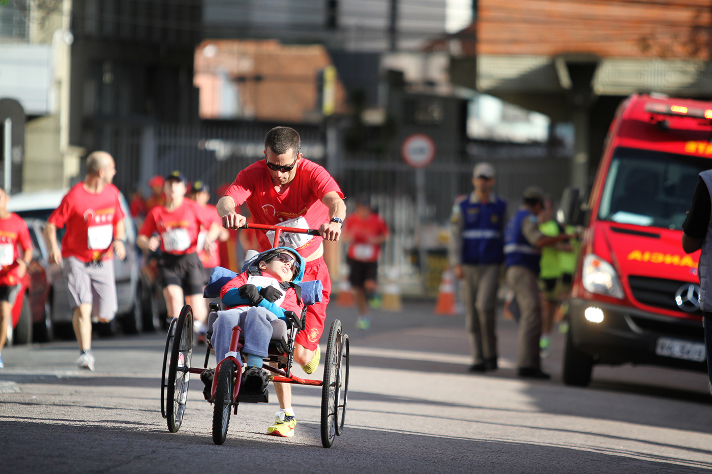 A largada da corrida deu-se às 7 horas, iniciando-se com soldado bombeiro militar Luciano Magno Juschaks, que fez o percurso com seu filho Cristiano, de 11 anos, que possui necessidades especiais. “A convite dos meus colegas vim participar e foi a primeira vez que trouxe meu filho. É importante fazer isto por ele e é uma vitória vê-lo aqui hoje, pois para os médicos ele teria poucos anos de vida. Este tipo de evento é importante para valorizar a profissão e enaltecer o nome da corporação”, ressaltou.