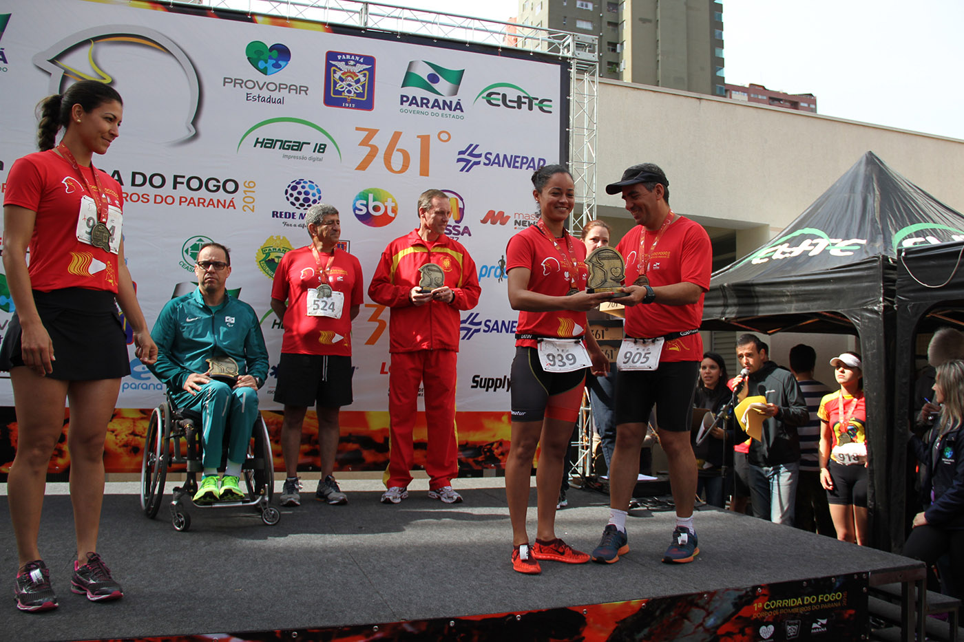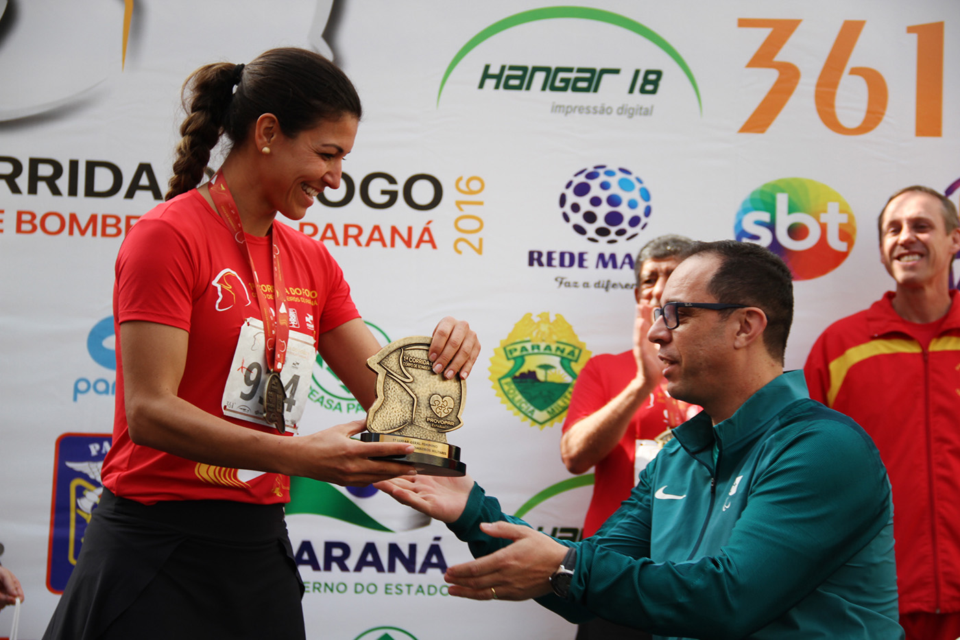 Após a prova todos os atletas receberam água, isotônico, frutas e puderam descansar da prova. A premiação iniciou em seguida e uma das personalidades presentes foi o esgrimista olímpico Athos Schwantes, que ficou honrado pelo convite. “Tenho bombeiros na família e pra mim é especial estar aqui. Esta é a primeira corrida, mas já vi uma grande participação de público e com uma organização impecável. Fico feliz em participar, pois toda a manifestação esportiva é valida”, afirmou.