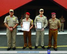 Na manhã de hoje (28) foi realizada a solenidade mensal do 1º Grupamento de Bombeiros (1ºGB), momento este em que foram homenageados os oficiais 1º Tenente Marcelo Hortig e 1º Ten. Eduado N. Hunzicker, os quais fizeram parte dessa unidade, mas que recentemente foram designados para trabalhar em outras atividades.