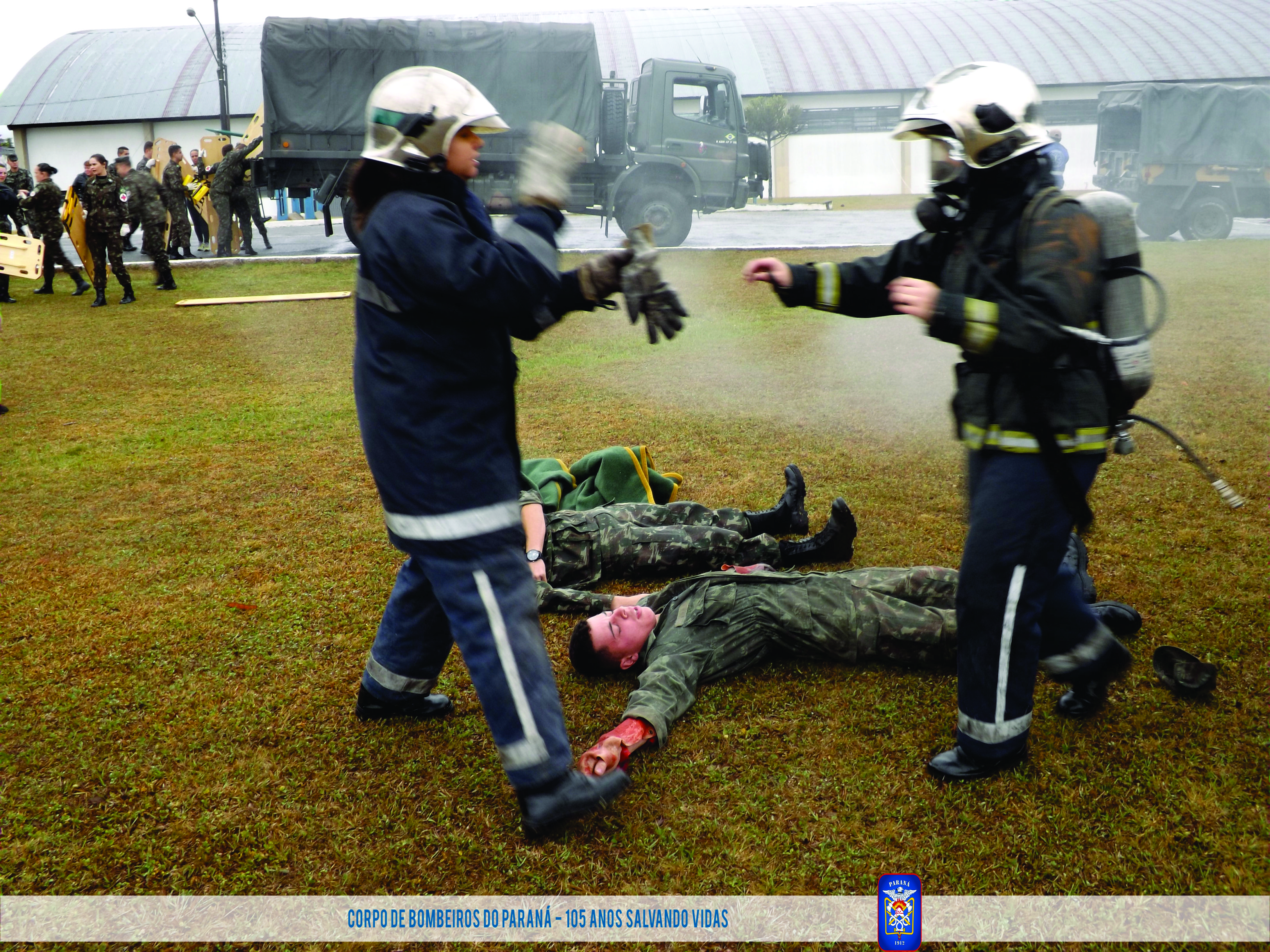 Nesse último dia de treinamento foram repassados conhecimentos especificos sobre o Atendimento a Múltiplas Vítimas (AMUVI), sendo que posteriormente, os alunos participaram de um simulado com cenário de uma explosão envolvendo 12 vítimas, as quais seriam atendidas por eles, coloacando em prática tudo o que aprenderam ao longo da semana.