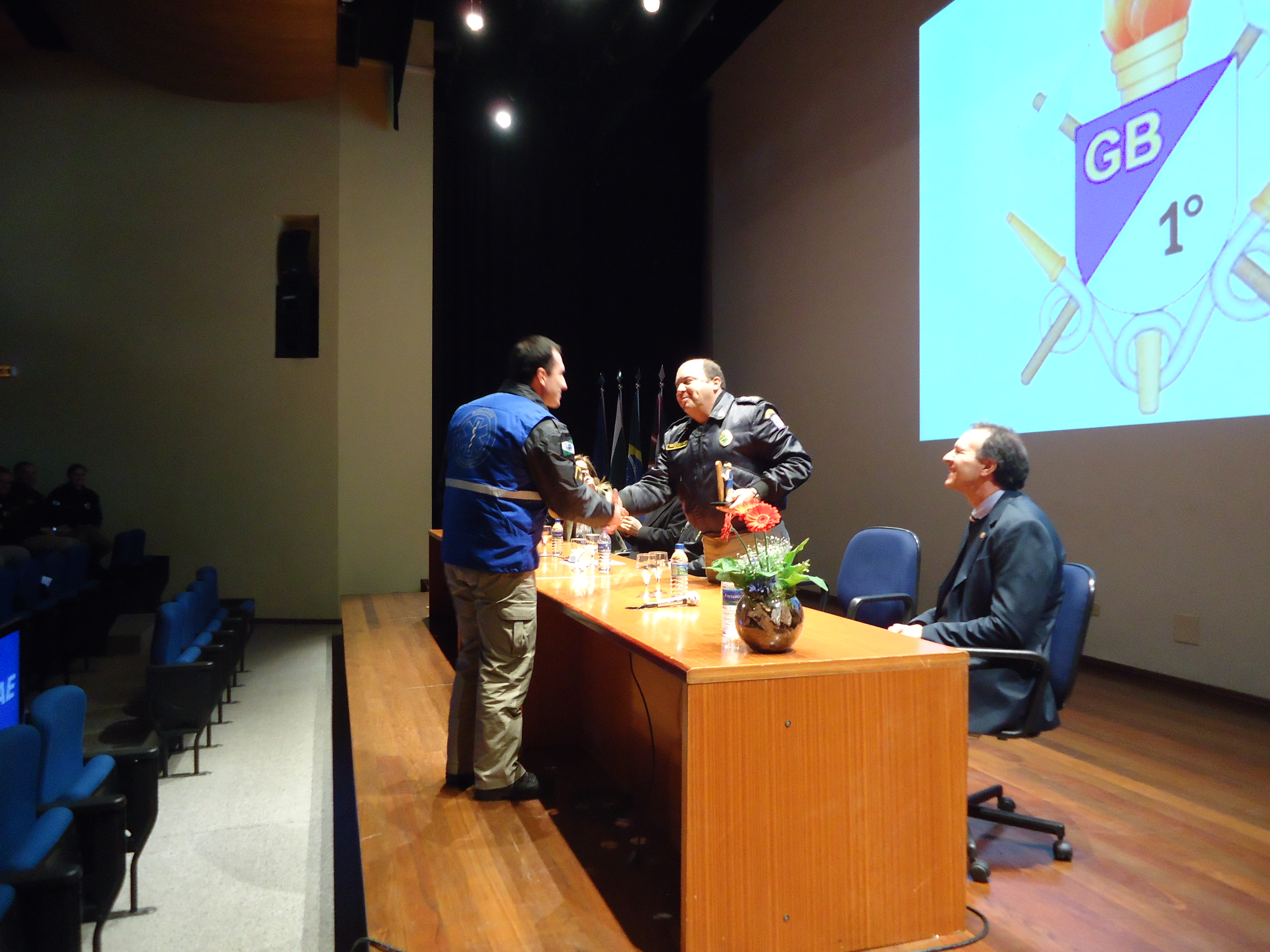 Registramos ainda a presença do Comandante de GOST, Major QOBM Samuel Prestes, do Chefe do Centro de Ensino e Instrução. Major QOBM Gerson Gross, do Subcomandante do 7º Grupamento de Bombeiros, Major QOBM Maurício Genero, e demais oficiais do 1º GB.