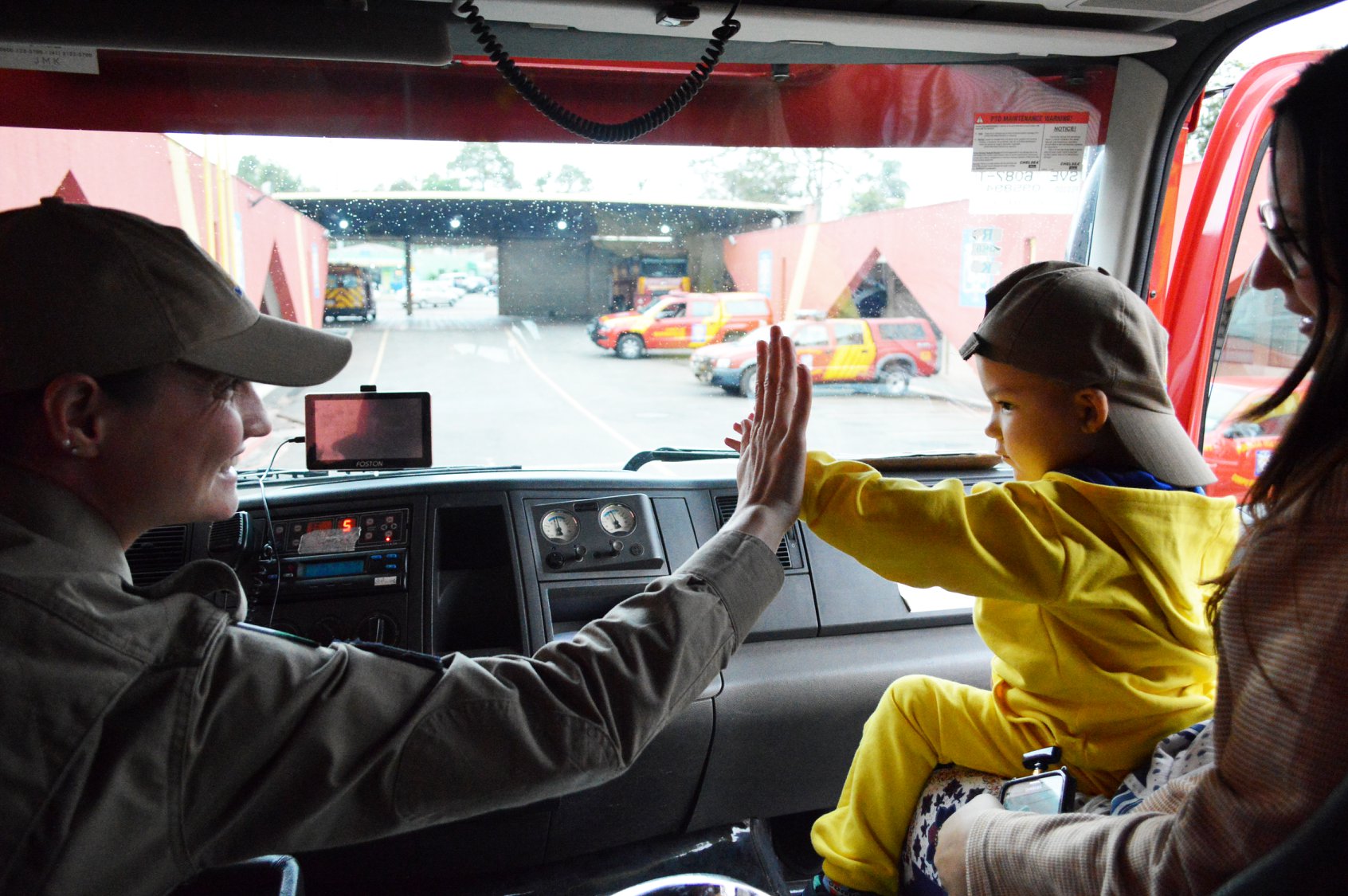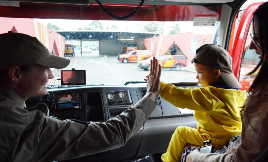 Apesar de sua timidez, foi possível ver em seu olhar a alegria que foi para ele visitar o nosso quartel e dar uma voltinha com o caminhão do bombeiro.