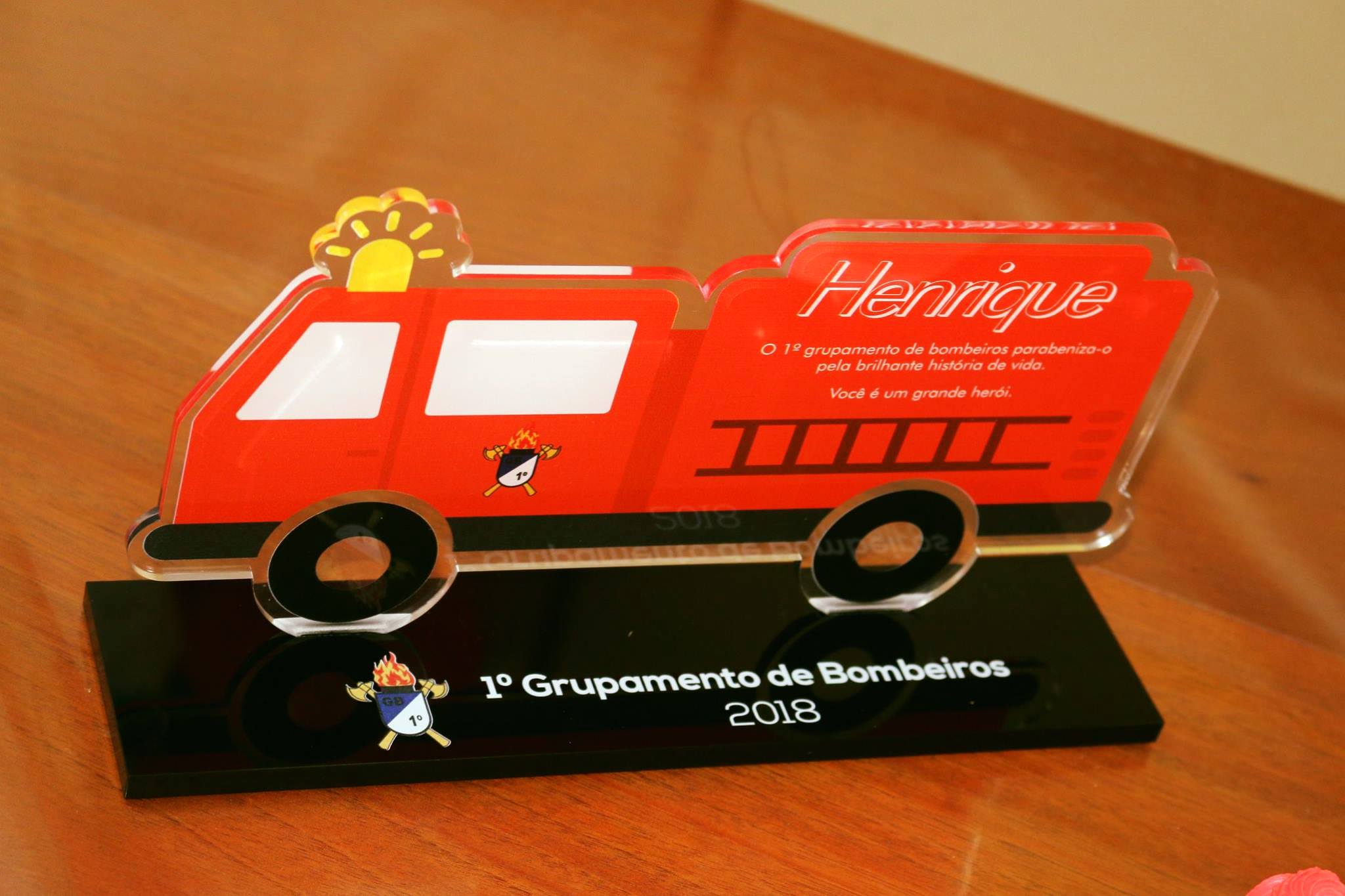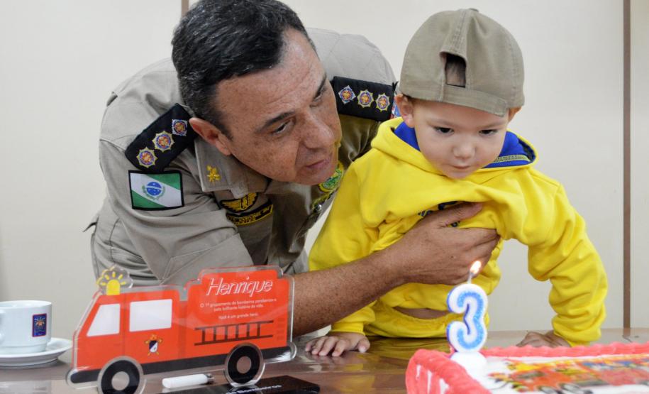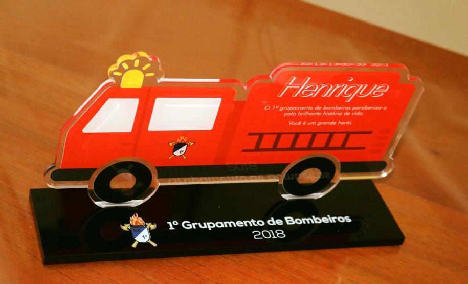 O Comando do 1º Grupamento de Bombeiros, Tenente-Coronel Prestes parabenizou o menino Henrique pela sua história de vida, porque apesar de tão pequenino já pode ser considerado um grande herói.