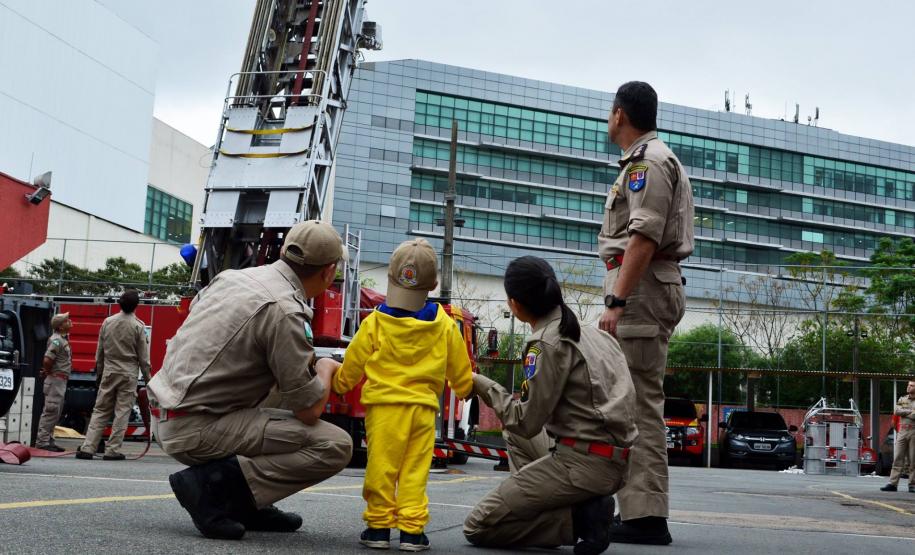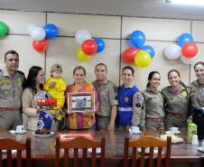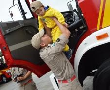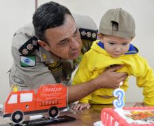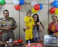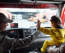 Na tarde desta quinta-feira (17), bombeiros do 1º Grupamento receberam o menino Henrique e sua família para uma visita no quartel.