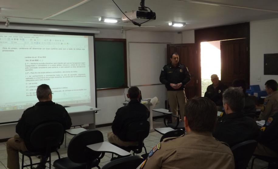 A instrução foi ministrada pelo 2º Ten. QEOPM Marcelo Retexin aos Sargentos do 1º GB, visando atualizar e recapacitar os Sargentos no tocante à elaboração do FATD, sanando as principais dúvidas e relembrando conceitos importantes.