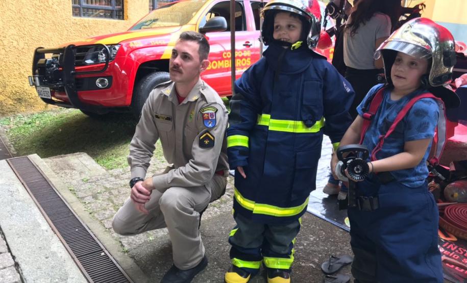 “É impressionante ver o interesse que as pessoas têm na nossa profissão, vejo que é um incentivo muito positivo para elas. Quando as crianças vestem o nosso equipamento elas se sentem bombeiros e bombeiras de verdade”, afirmou o Sd. Gatz, bombeiro que participou do terceiro dia de evento.