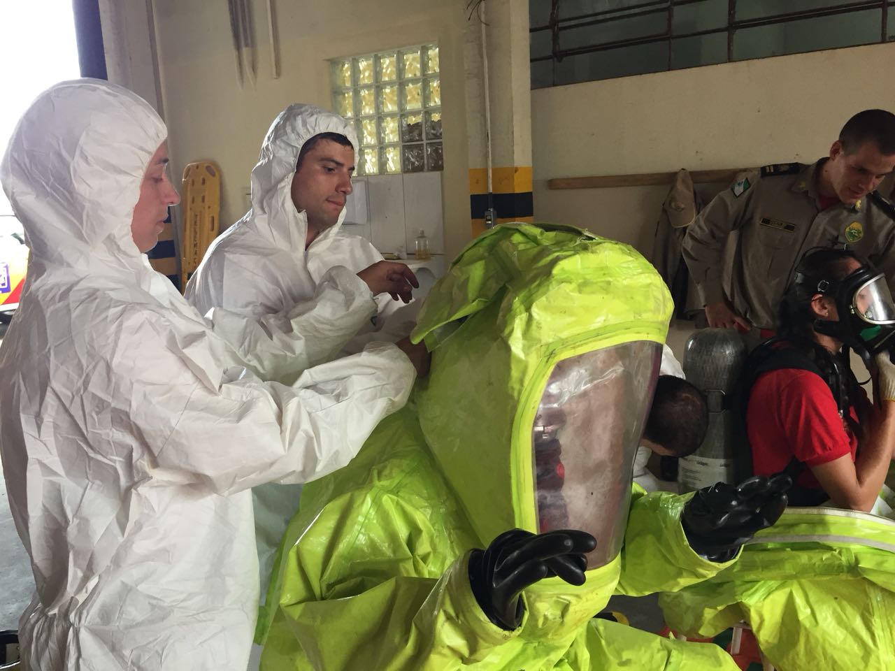 O treinamento é parte da disciplina de Intervenção em emergências com Produtos Perigosos e é fundamental para a formação dos futuros Oficiais do Corpo de Bombeiros.