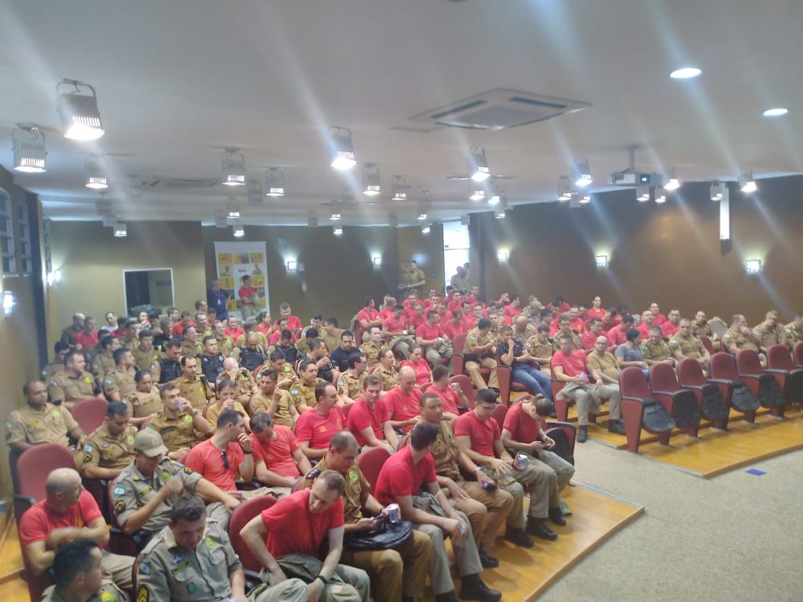 Ainda no dia 8, no período da tarde, tivemos uma palestra sobre Saúde Mental com o Cap. QOPM Rafael Cordasco Penkal, da Diretoria de Pessoal, que contou com aproximadamente 140 militares, policiais e bombeiros, onde puderam receber orientações sobre a importância de ter uma boa saúde mental para o exercício da profissão bombeiro e policial militar.