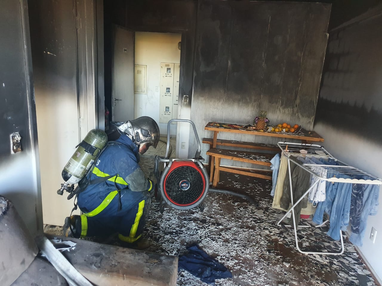 Infelizmente o apartamento foi totalmente consumido pelas chamas.