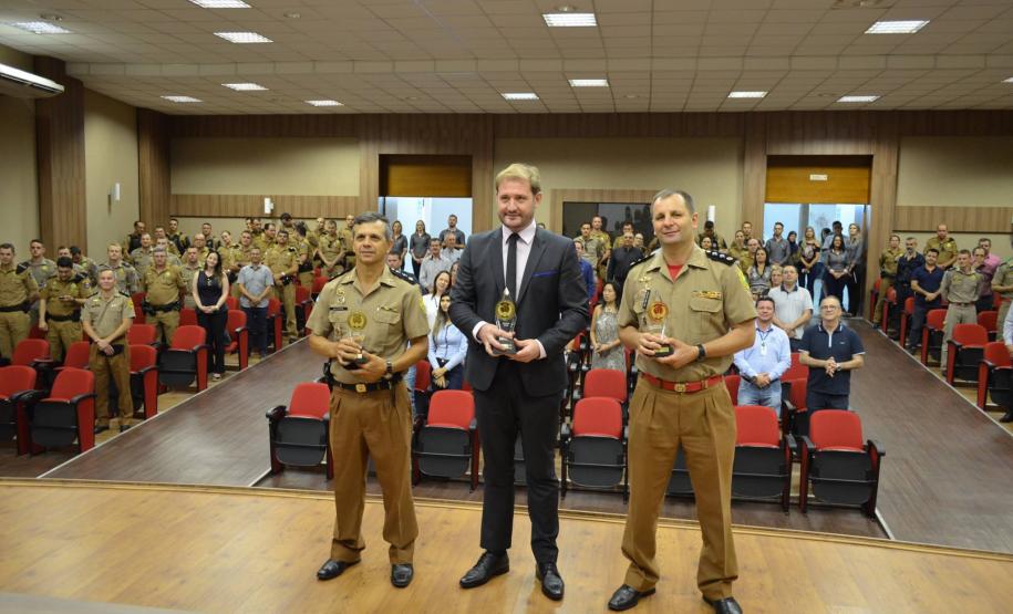Major Edson Cechinel, Comandante do 21º Batalhão de Polícia Militar, Major Antonio Schinda, Comandante do 3º Subgrupamento de Bombeiros Independente e Valderes Luiz Scalco, Delegado-chefe da 19ª Subdivisão Policial, receberam os troféus.