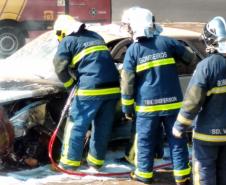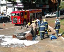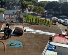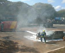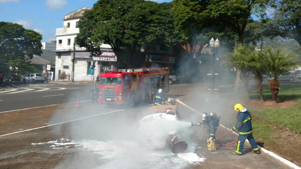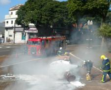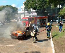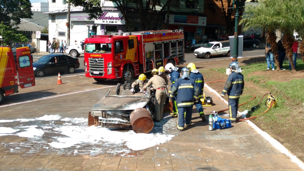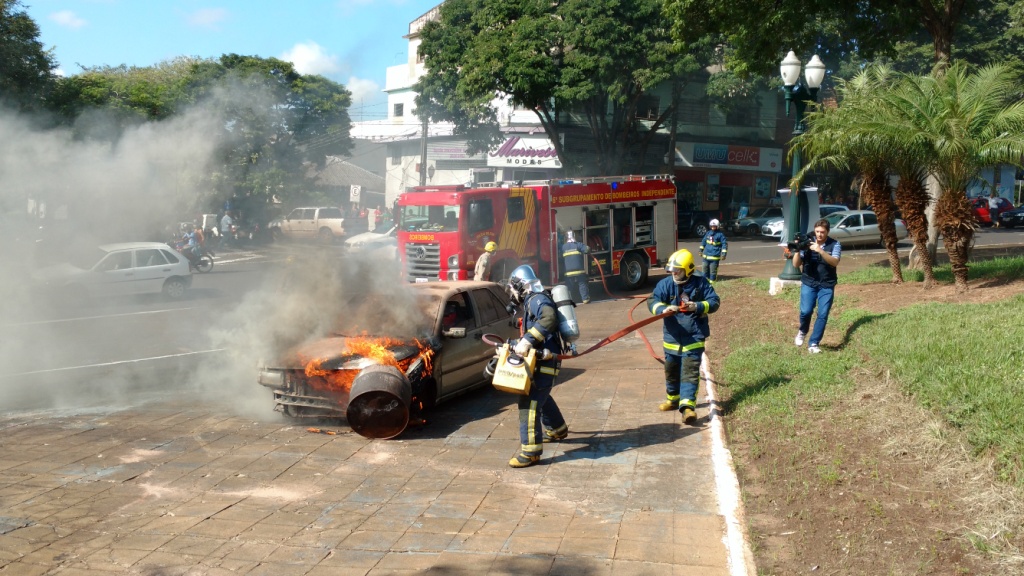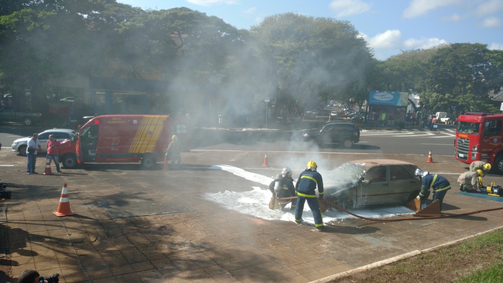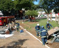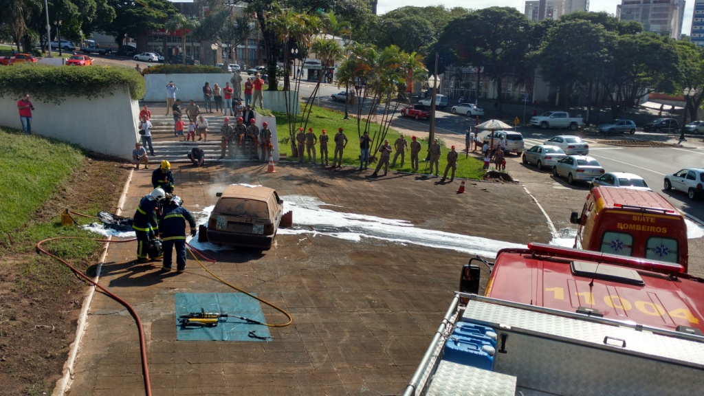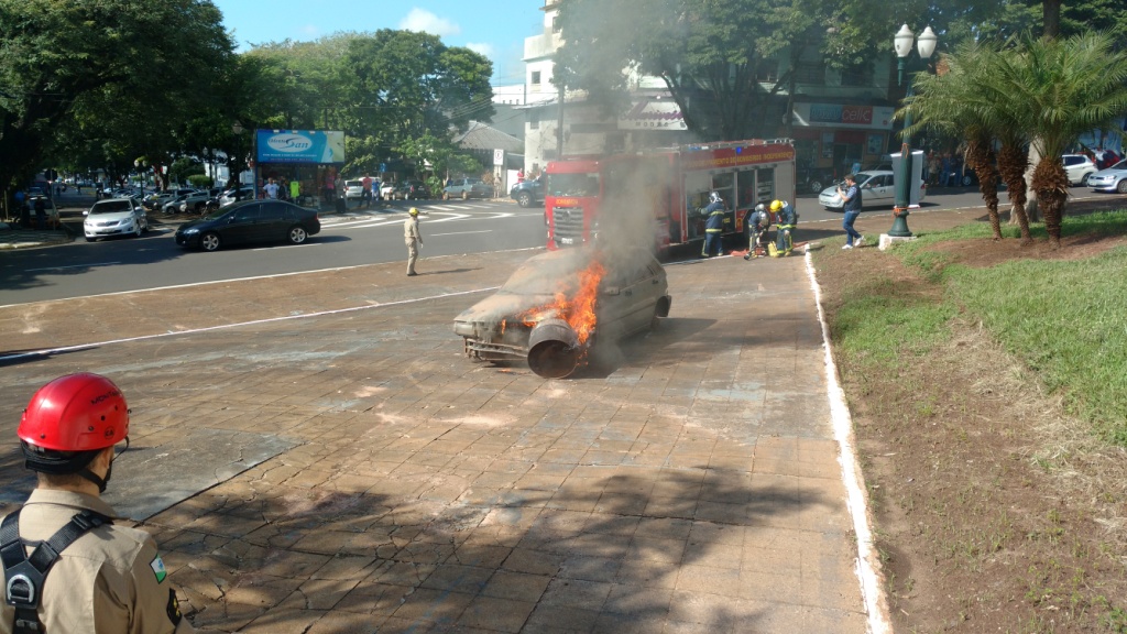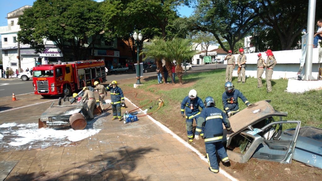 Em comemoração aos 40 anos da instalação de uma unidade do Corpo de Bombeiros em Umuarama, equipes do 6º Subgrupamento de Bombeiros Independente realizaram na manhã desta sexta-feira (13), uma simulação de acidente envolvendo veículo em chamas com vítima presa em ferragens e uma tirolesa na Praça Santos Dumont no centro da cidade.
