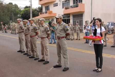 Finalizando a Solenidade, foi realizado o desfile militar em continência às autoridades, composto pela participação de tropa a pé e motorizada, com destaque para a apresentação das novas viaturas, dentre elas duas novas Auto-Ambulâncias, além da participação das alunas do projeto Bombeiro e a Melhor Idade, iniciativa do 4°GB na promoção de uma vida saudável com a inserção de atividades físicas aos idosos.