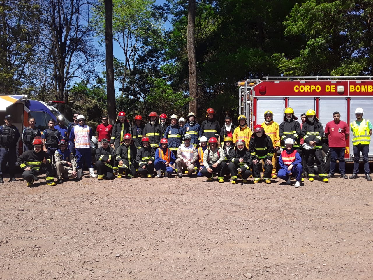Participaram do exercício vinte brigadistas, os quais se apresentaram portando material necessário para emprego em combate a incêndios. Ainda, foi realizada conferência dos kits de emergência de cada empresa, composto por materiais de emprego operacional em situações de incêndios.