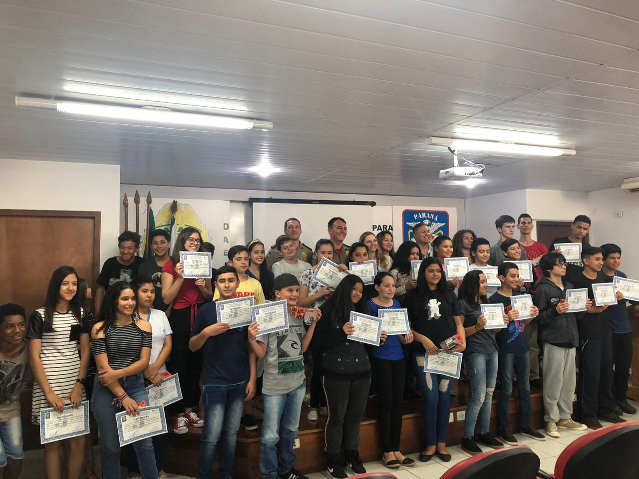 O 4º Grupamento de Bombeiros realizou na data de hoje a formatura da segunda turma do Projeto Conectando Oportunidades, projeto onde são ministradas aulas de informática (windows, internet, word, excel e power point) para alunos do ensino fundamental, com idade de 12 a 16 anos, da rede estadual de ensino. As aulas foram ministradas por bombeiros militares e por civis voluntários, com objetivo de transmitir gratuitamente acesso ao conhecimento informática básica e assim abrir novas possibilidades na vida desses adolescentes. O Major Amarildo, idealizador do projeto, ressaltou a importância desse projeto na vida dos adolescentes e ressaltou que este foi o primeiro certificado de muitos que eles ainda irão conseguir na trajetória acadêmica. Ele agradeceu aos bombeiros e civis que disponibilizaram seu tempo para ministrarem as aulas, agradeceu ainda o apoio da FAG e do Núcleo Regional de Educação, que foram parceiros na execução do projeto.
