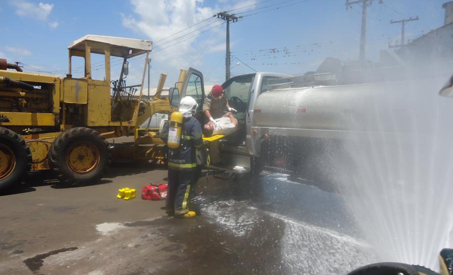 O evento fez parte Semana de Redução de Desastres. Na cena do acidente simulado foi estabelecida uma colisão entre dois veículos; um trator e um caminhão de transporte de combustíveis.