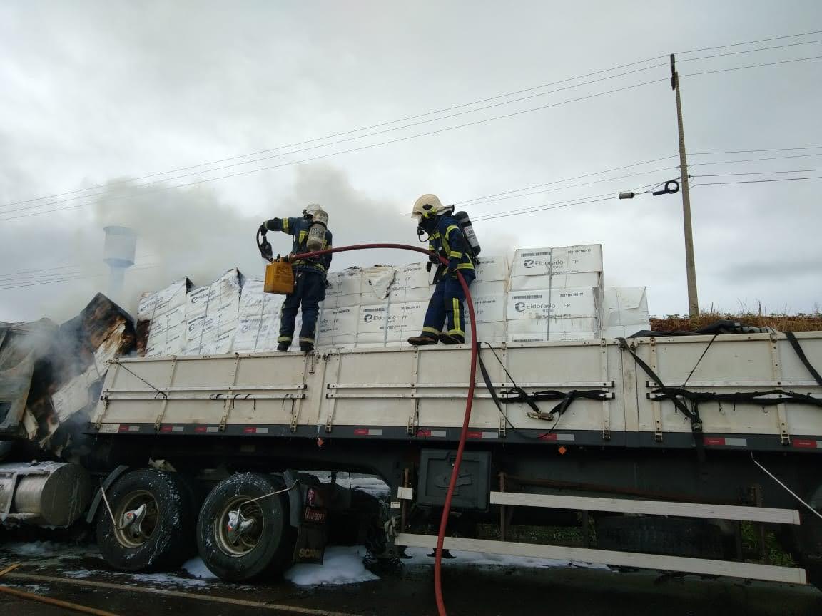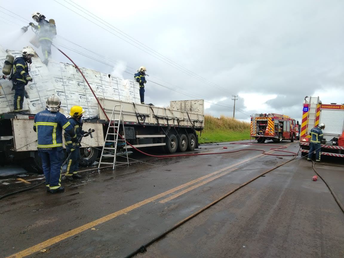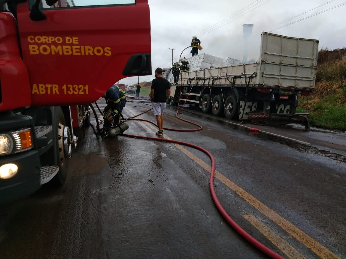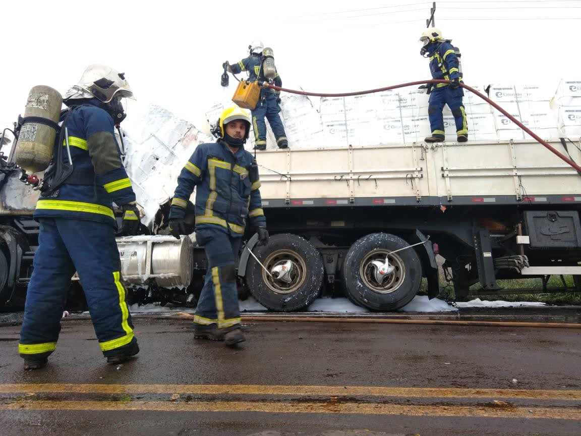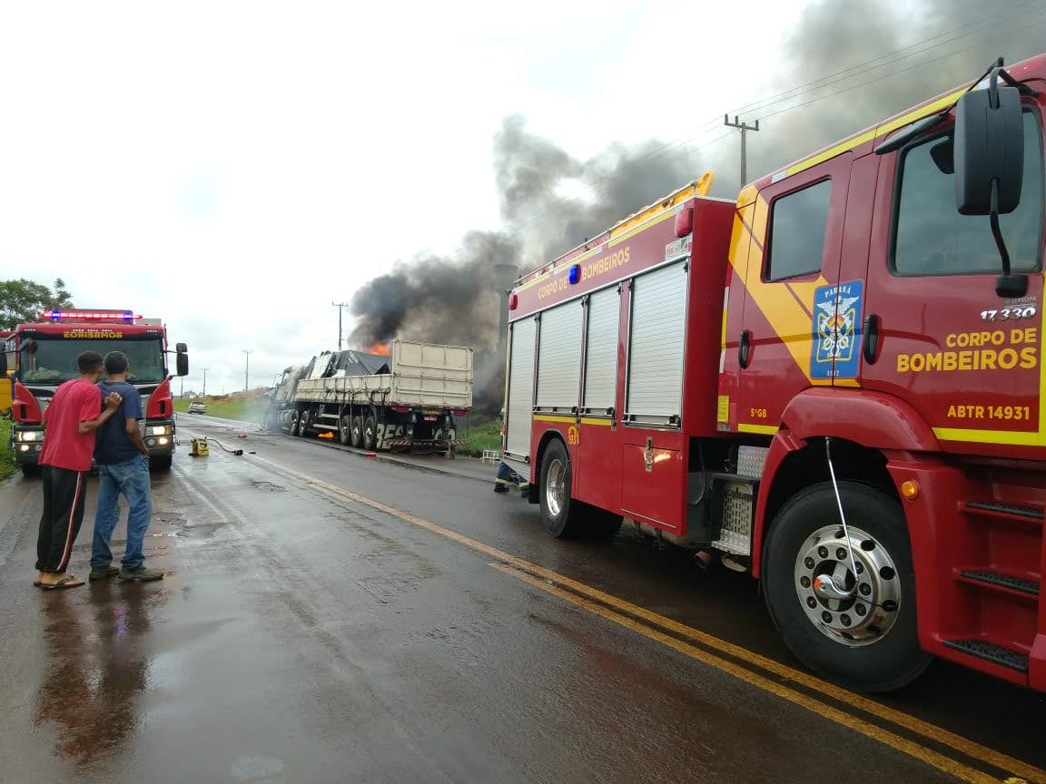 Ao chegar no local, os bombeiros avistaram um caminhão, que transportava madeira, distante dos demais veículos envolvidos no acidente. Mais adiante na pista, a segunda carreta estava em chamas. O fogo invadiu a cabine onde o motorista estava. Populares relataram que após a colisão o condutor estava consciente e orientado, porém suas pernas estavam presas, impedindo sua saída para além do incêndio, mas tristemente acabou falecendo.