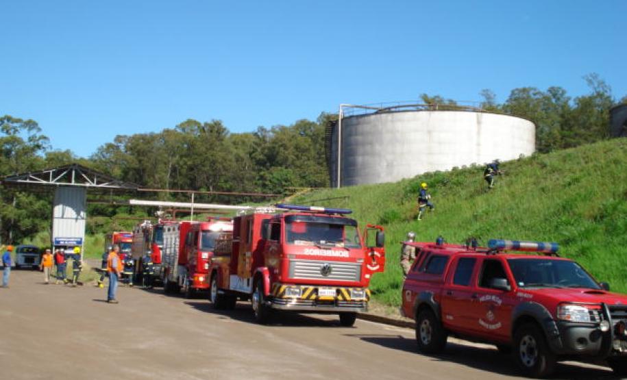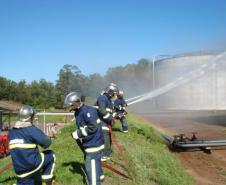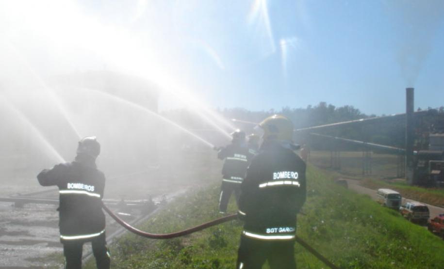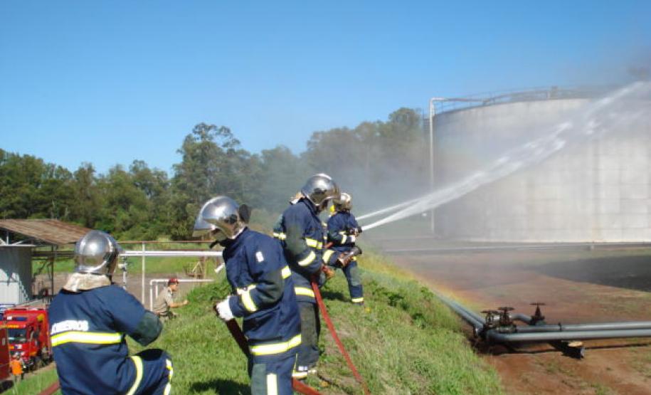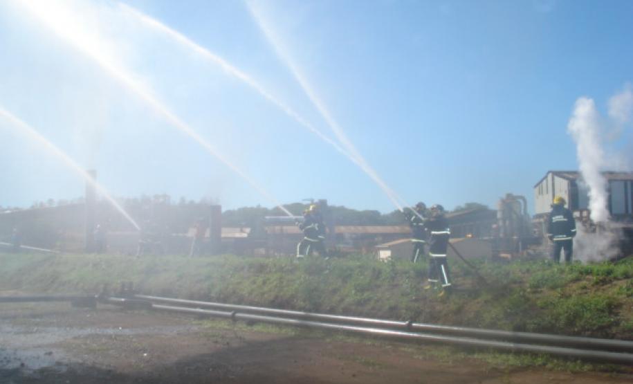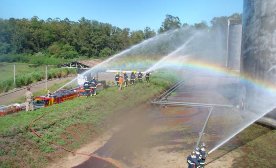 Nesta terça-feira (17) o 5º Grupamento de Bombeiros- Maringá, realizou instrução de Combate a Incêndio na Usina de Açúcar Santa Terezinha (USAÇUCAR). O treinamento contou com a presença de 15 bombeiros, dos diversos postos de Maringá e do distrito de Iguatemi. O objetivo da atividade era verificar a eficiência do combate em caso de incêndio em um dos 8 tanques de álcool, os quais ficam num ponto de risco da usina.