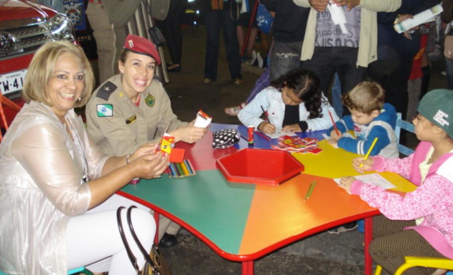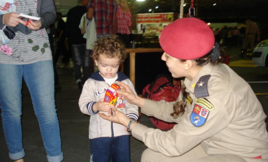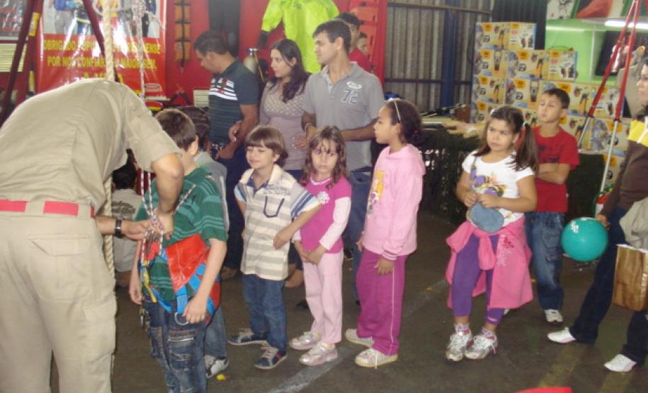 Além da exposição de materiais, houve a distribuição de brindes às crianças, e também grande interatividade com os bombeiros. Foram desenvolvidas atividades de rapel, de primeiros socorros, de colorir figuras e montagens de carrinhos. Também foram distribuídos pirulitos e balas.