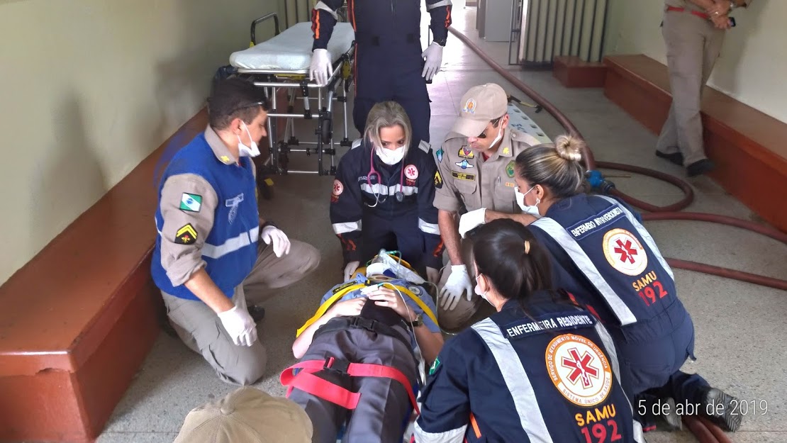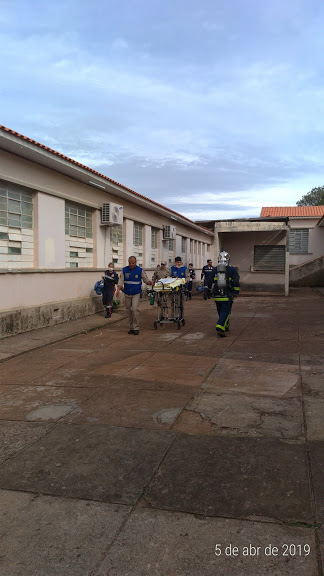 Com a chegada do caminhão de combate a incêndio e das ambulâncias do SIATE e SAMU, o foco de incêndio foi combatido e duas "vítimas" com possível quadro de intoxicação foram atendidas. Na vistoria foi localizado mais um aluno, sem ferimentos, "escondido/abrigado” no banheiro.