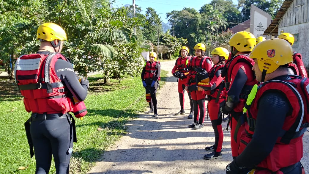 Durante o treinamento, foram ministradas aulas teóricas e práticas, como Fases do Salvamento, Dinâmica do Rio, Nós e Ancoragens, Arremesso de Cabo, Transposição de Obstáculo, Salto na água dentre muitas outras.