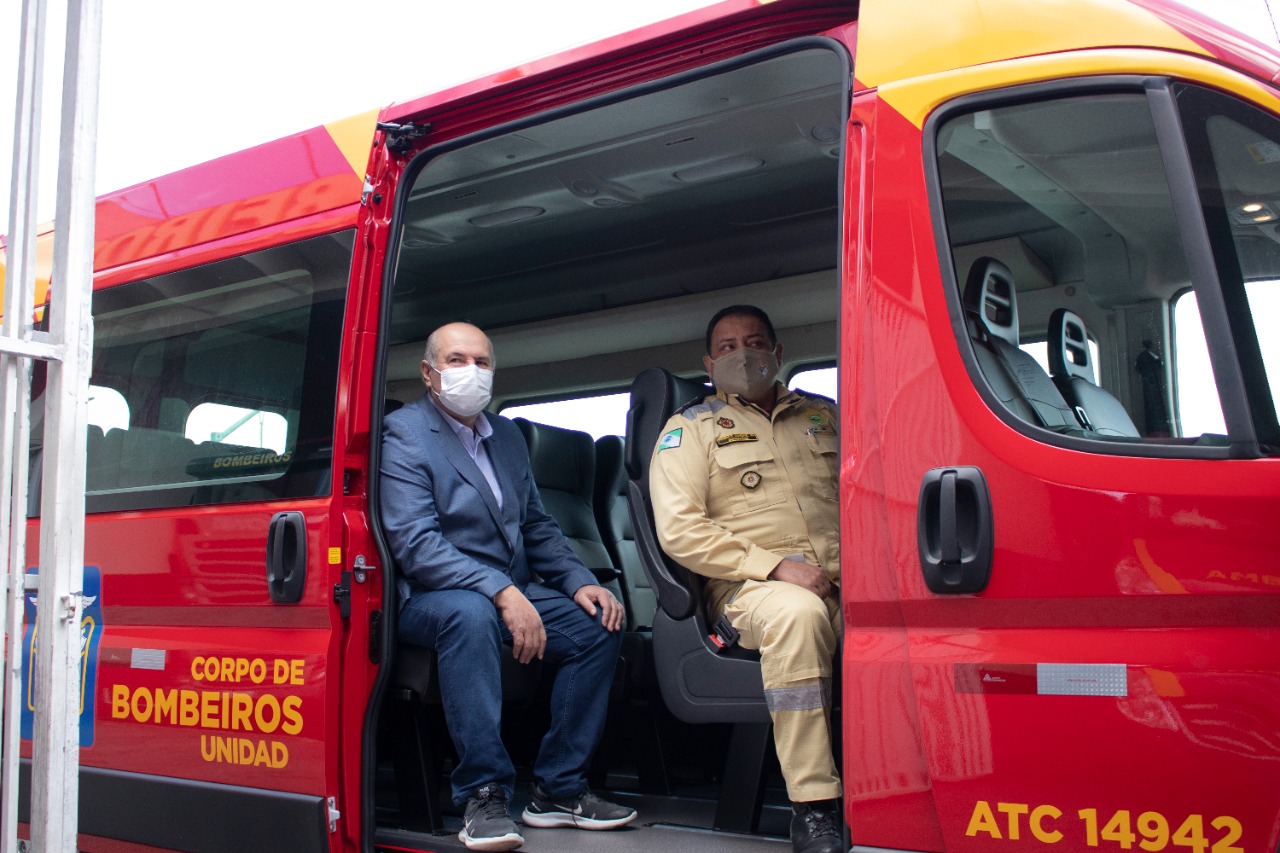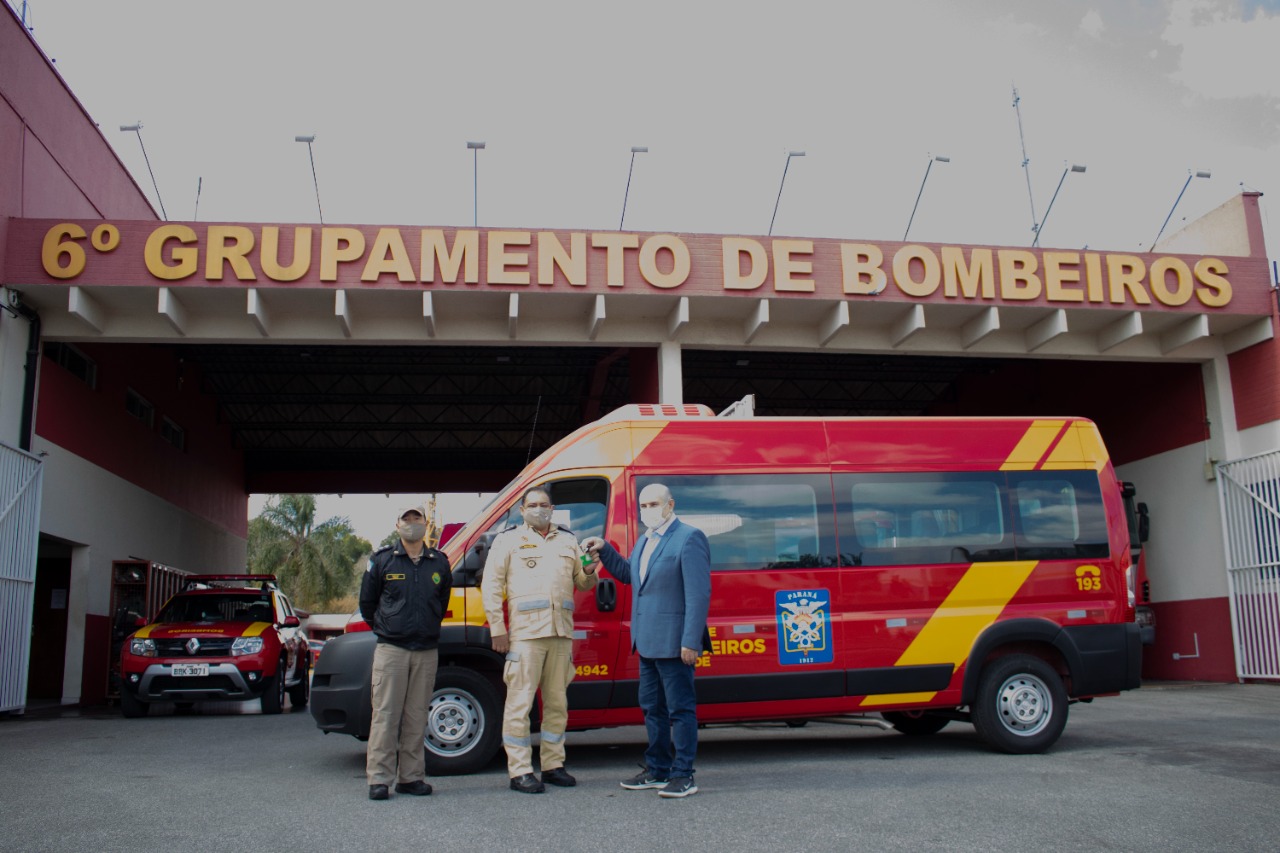 Hoje, dia 03 de agosto de 2021, o Comandante do 6º Grupamento de Bombeiros, Ten.-Cel. Emerson José Guimarães Ferreira, acompanhado de seus Oficiais, recebeu das mãos do Dep. Estadual Francisco Bührer a chave de uma viatura modelo ATC (Auto Transporte Coletivo).