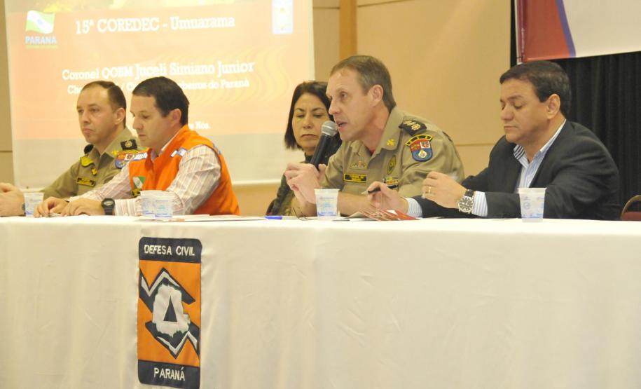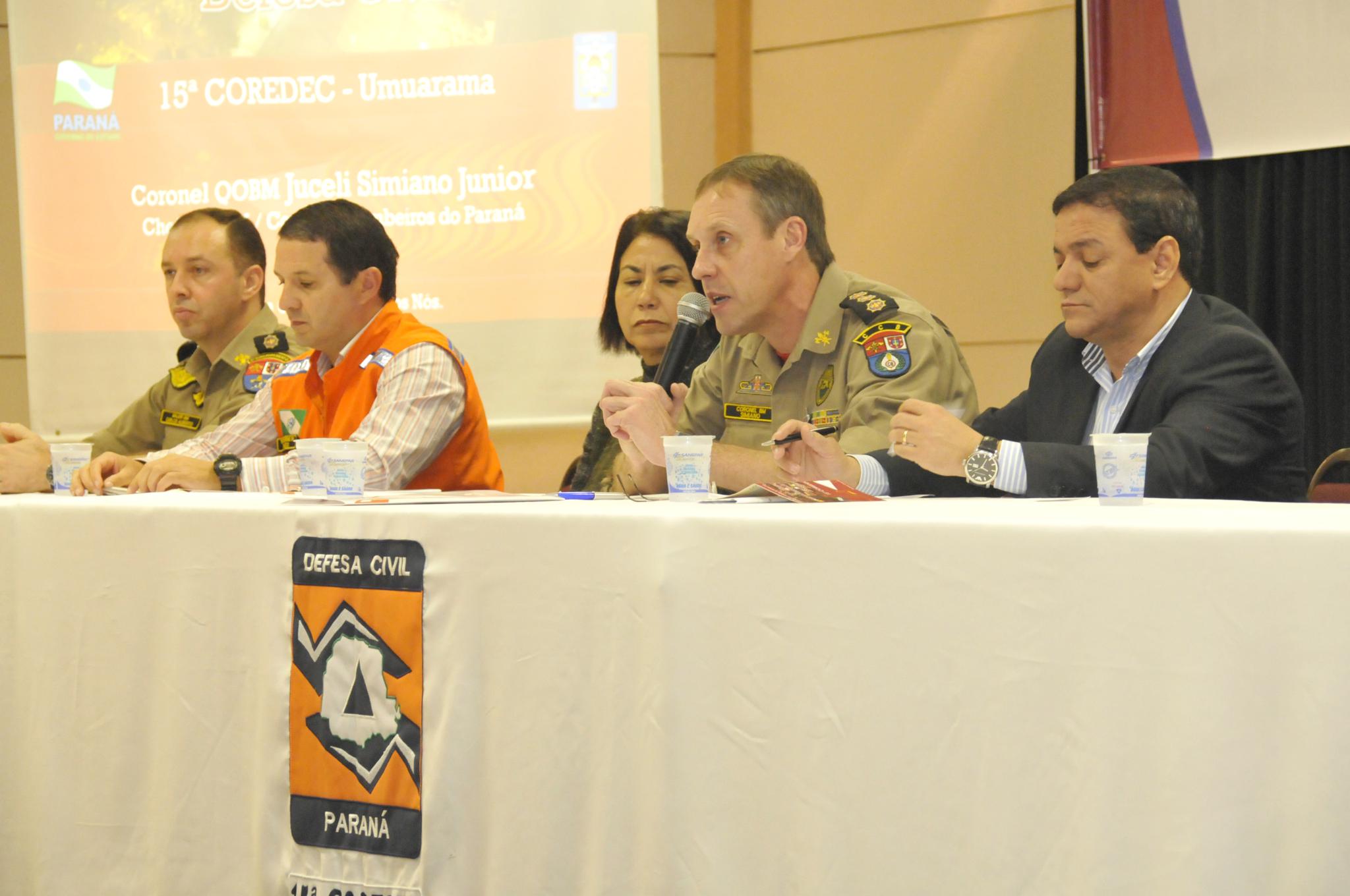 O encontro também contou com a participação do Coronel Juceli Simiano Junior (Chefe do Estado Maior do CCB), Ten.-Cel QOBM Nelson Ademar Piske (Chefe da 8ª Seção EM/CCB), Ten.-Cel QOBM Edemilson de Barros (Chefe da Divisão de Defesa Civil da Casa Militar), Major QOBM Carlos Alberto de Oliveira (anfitrião do evento), Comandantes de Grupamentos e Subgrupamentos Independentes do Corpo de Bombeiros do Paraná, Coordenadores Regionais de Defesa Civil e Chefes das B8 dos GBs e SGBIs.
